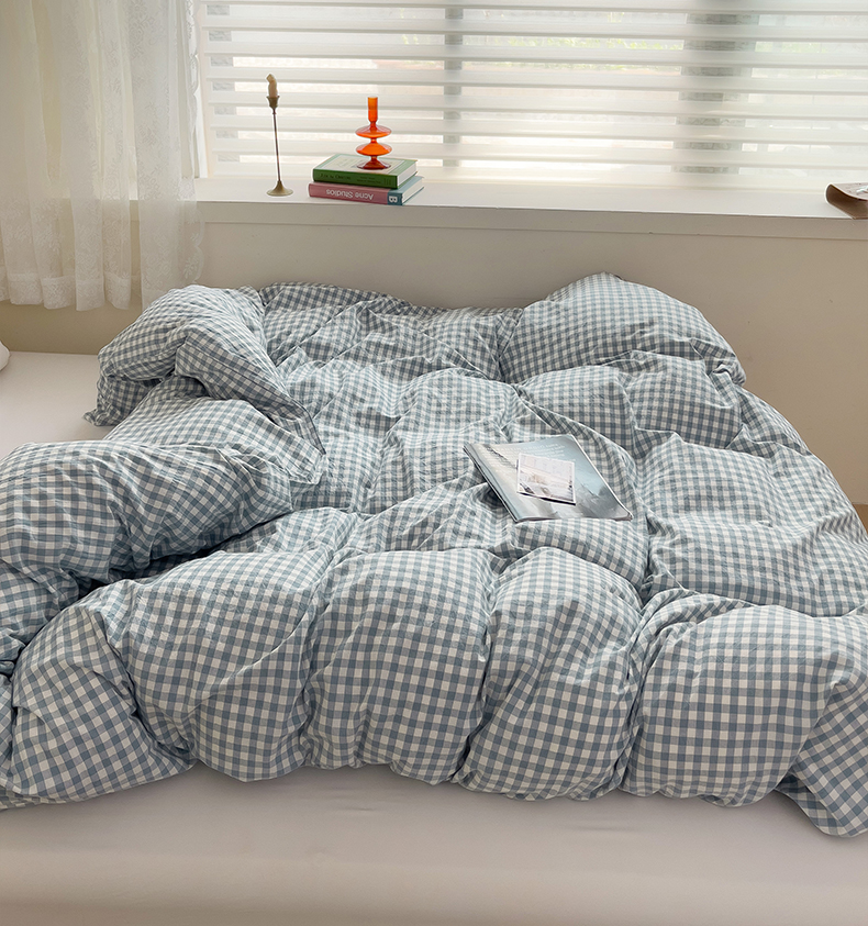 商品名称:大柏树 2025新款A类色织全棉水洗棉单品系列-单被套 浅蓝小格