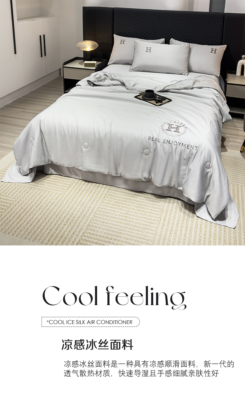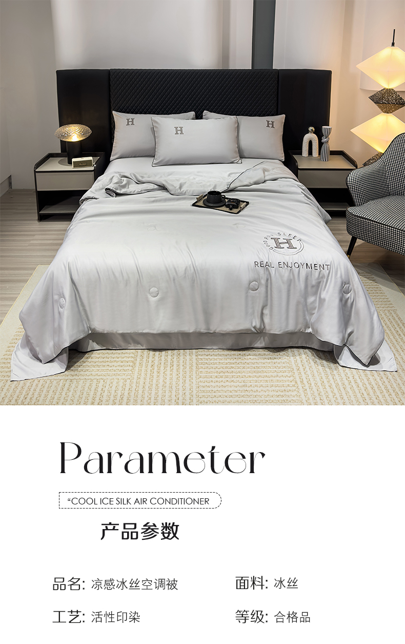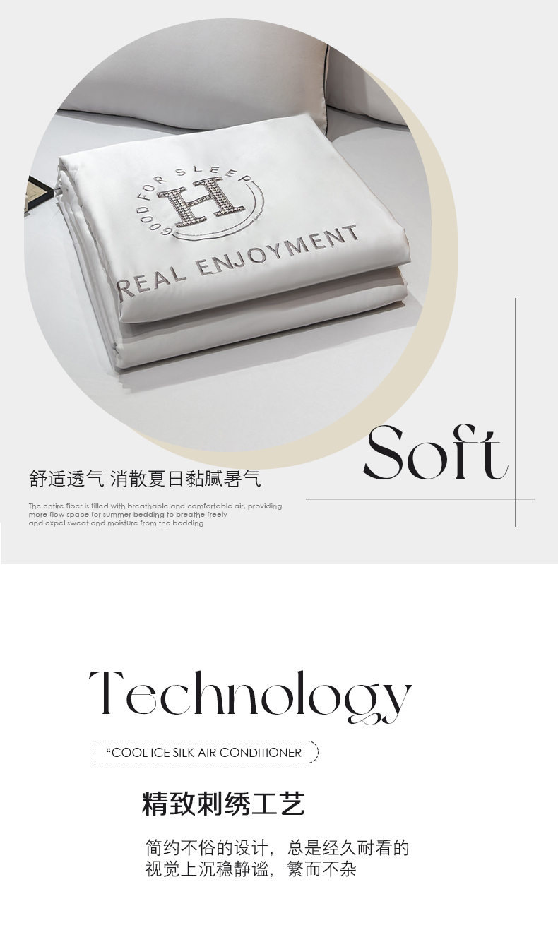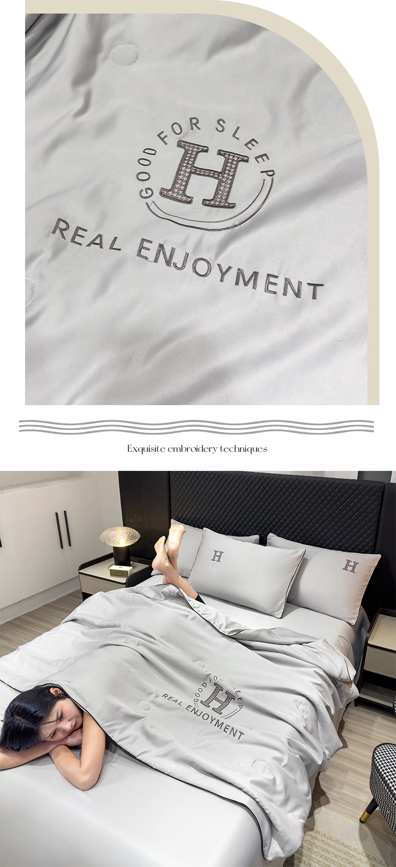 • 91家纺网 家纺一手货源 找家纺 星航家纺 2025新款轻奢夏被四件套晾感冰丝空调被水洗冰丝夏被 浅灰