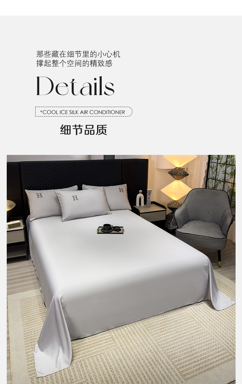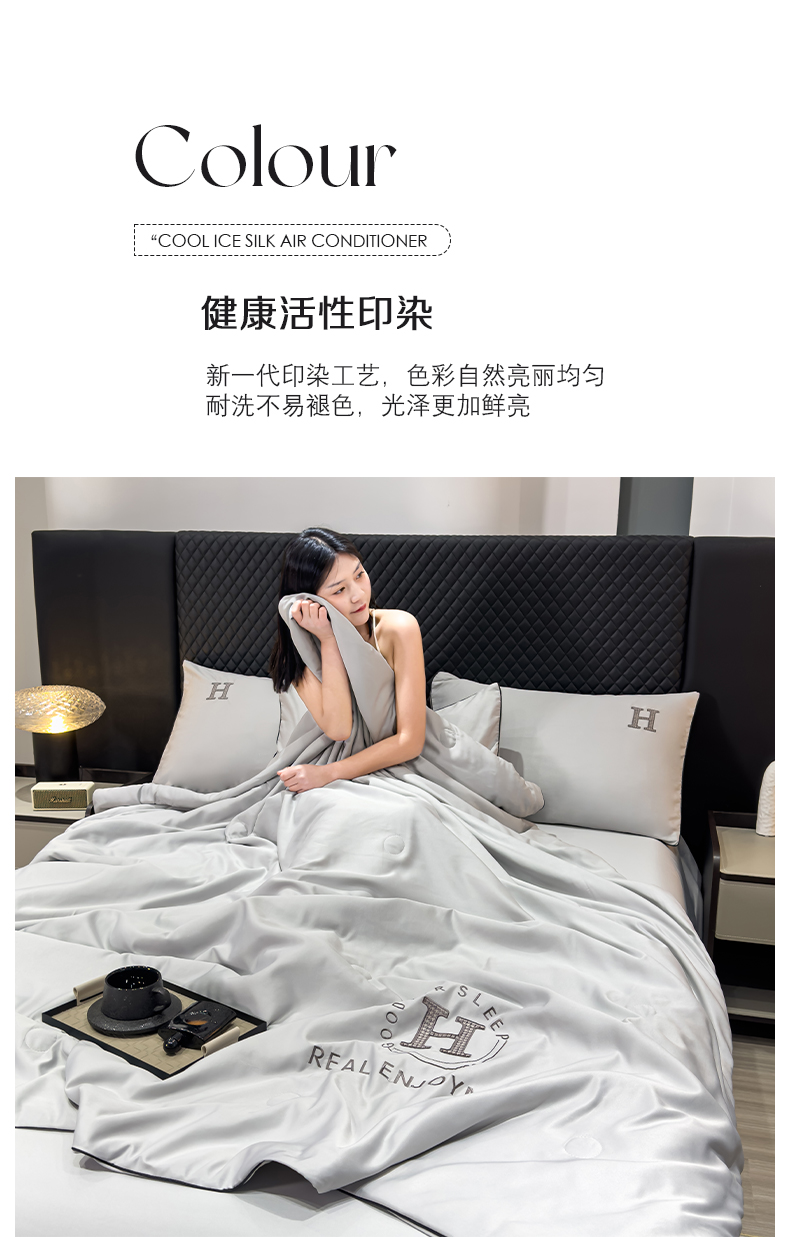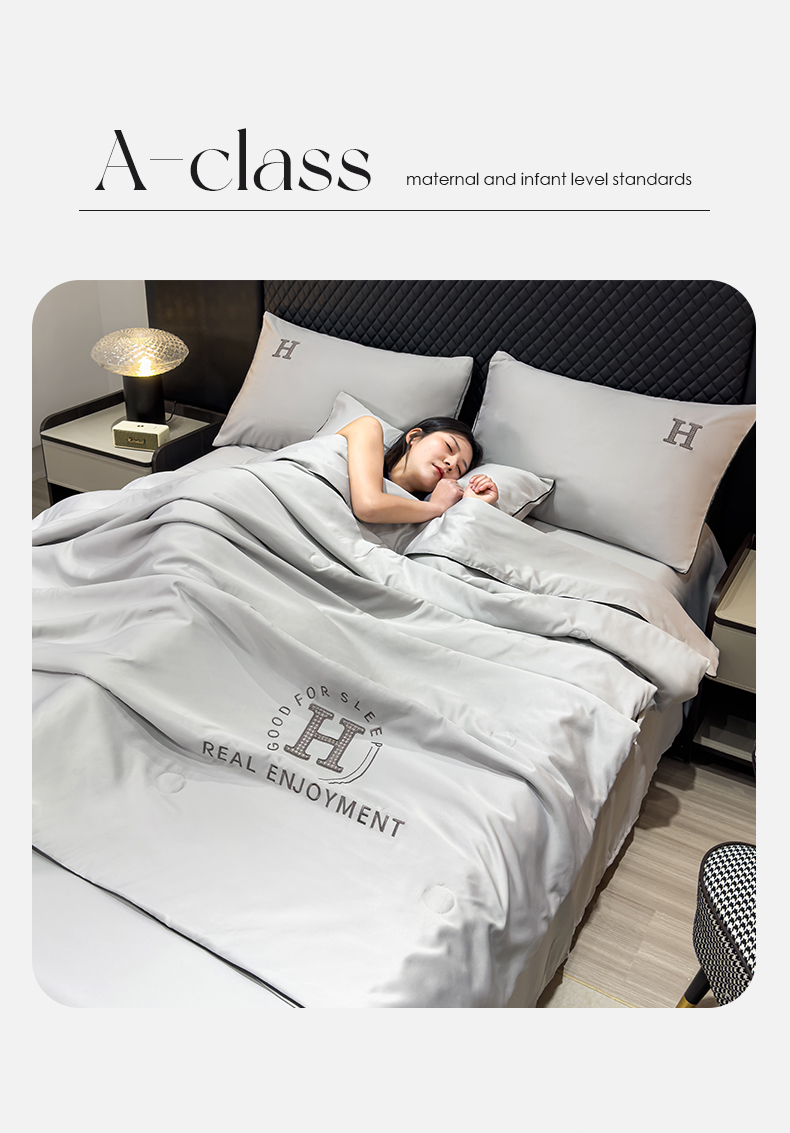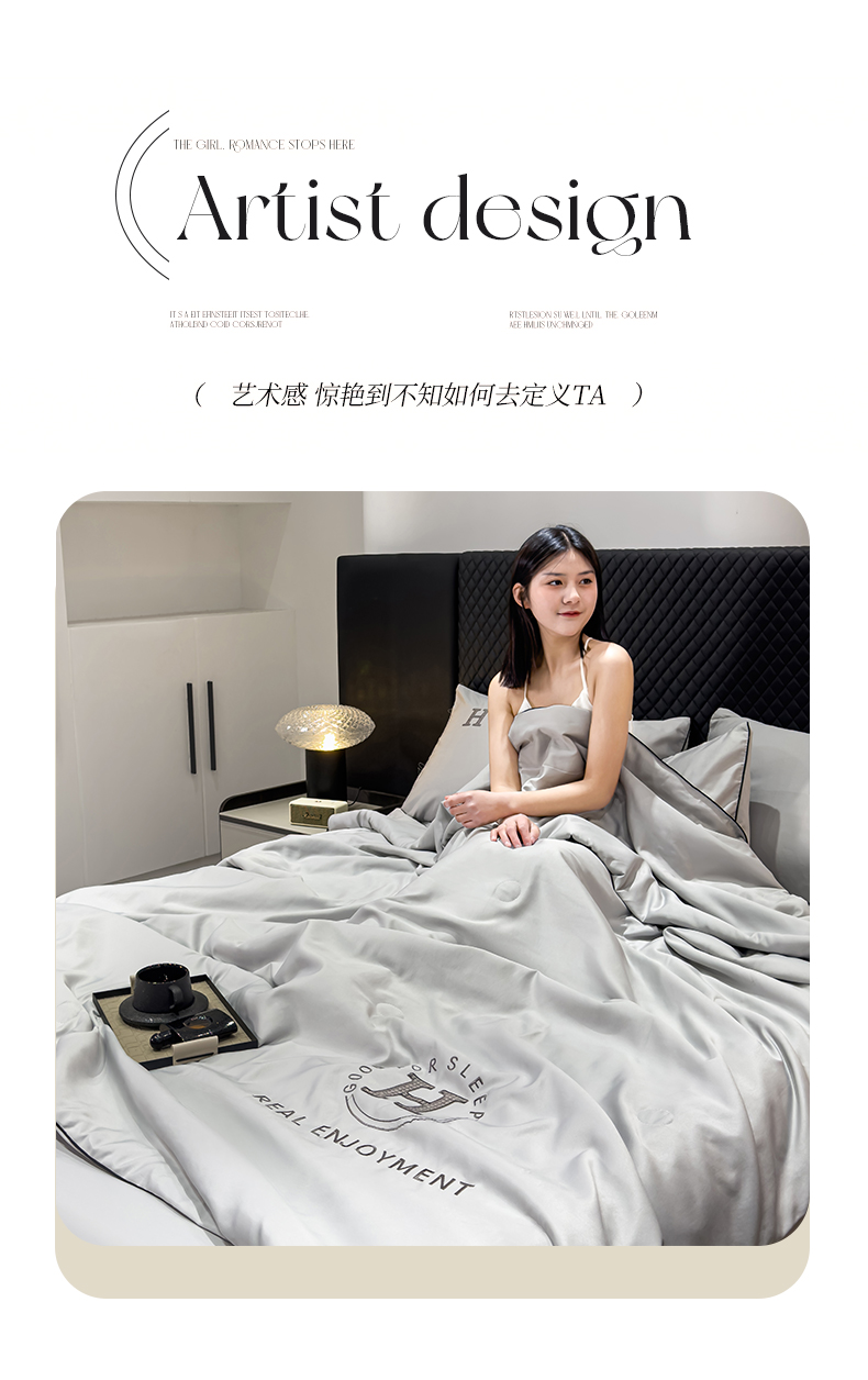 • 91家纺网 家纺一手货源 找家纺 星航家纺 2025新款轻奢夏被四件套晾感冰丝空调被水洗冰丝夏被 浅灰