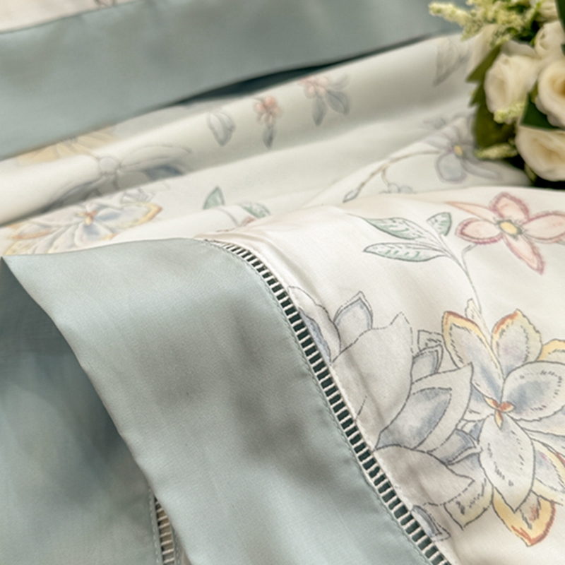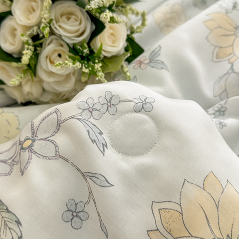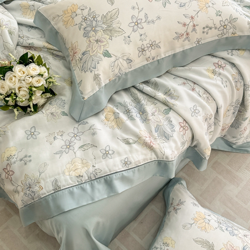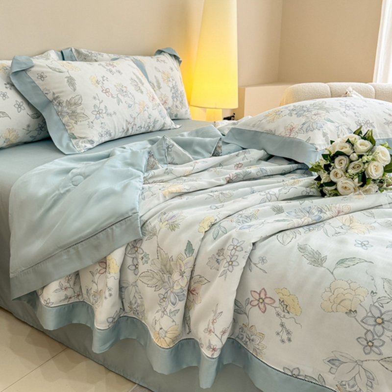 若未2025新款法式莱赛尔天丝印花镂空夏被和夏被四件套 春日蜜糖(兰)