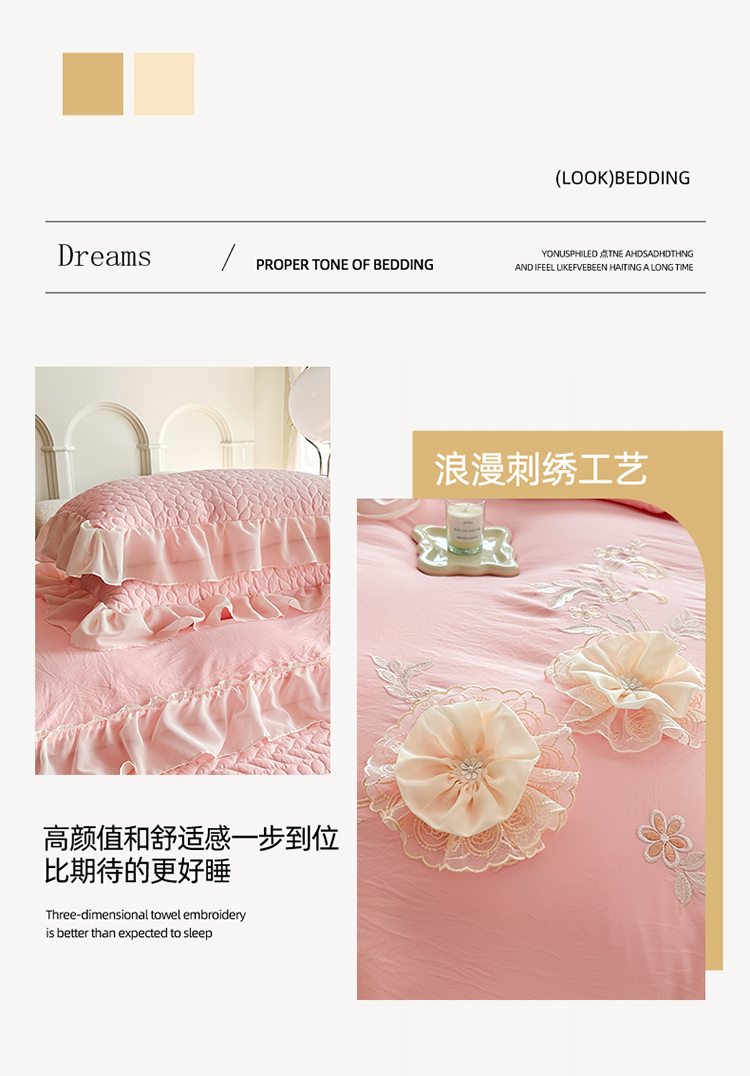 (总)漫布云 2025新款230g高克重韩版立体盘花牛奶蚕丝绒绣花四件套床裙款被套-洛丽塔系列,洛丽塔-嫩黄 ,洛丽塔-香芋紫,洛丽塔-珍珠粉, 洛丽塔-婴儿蓝