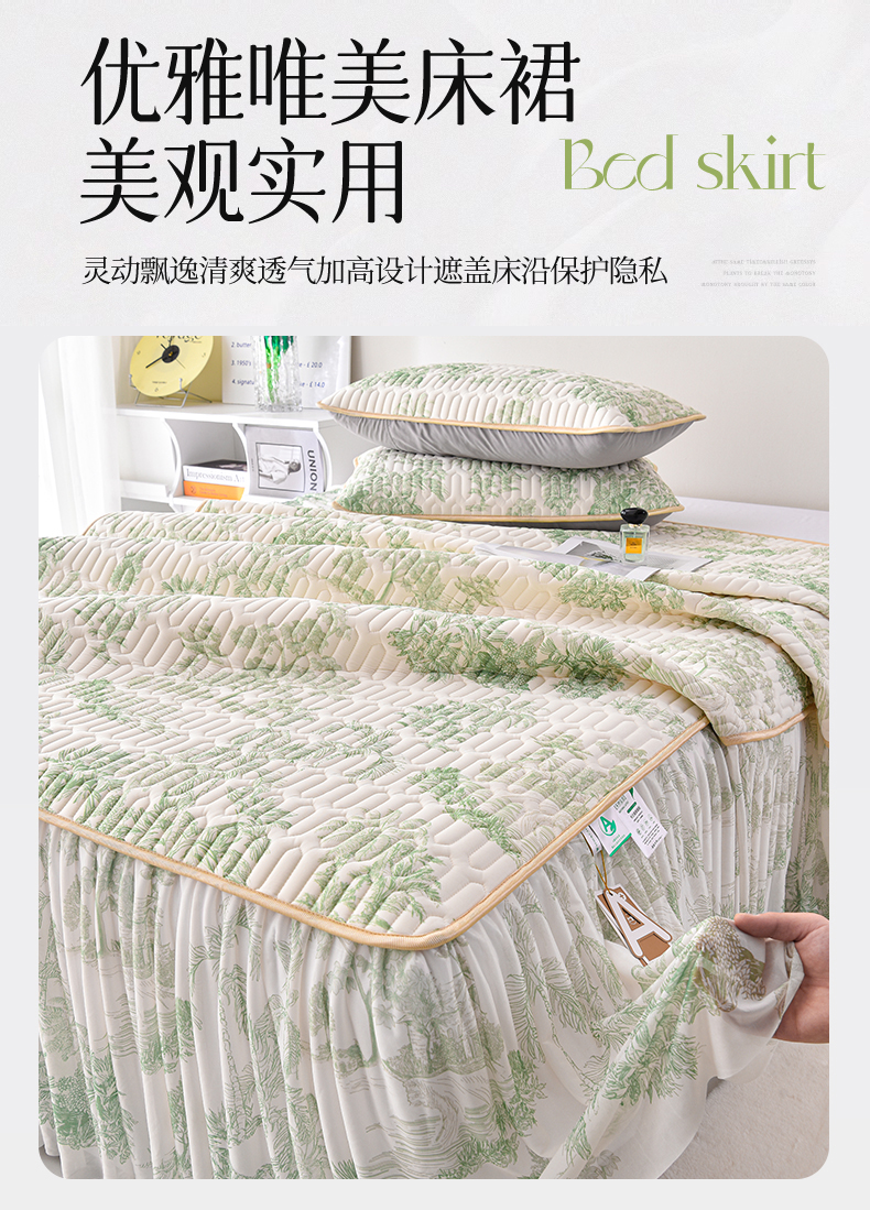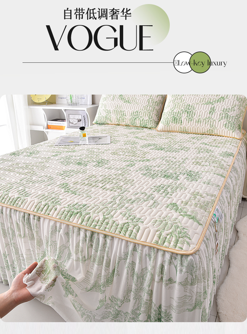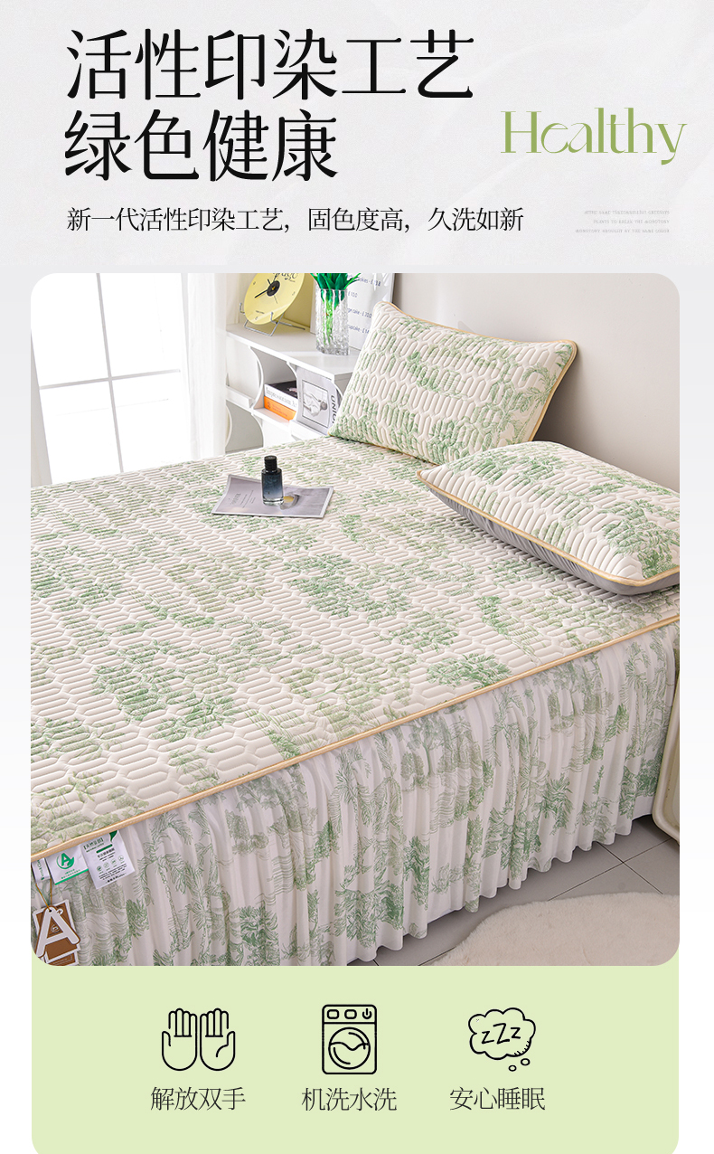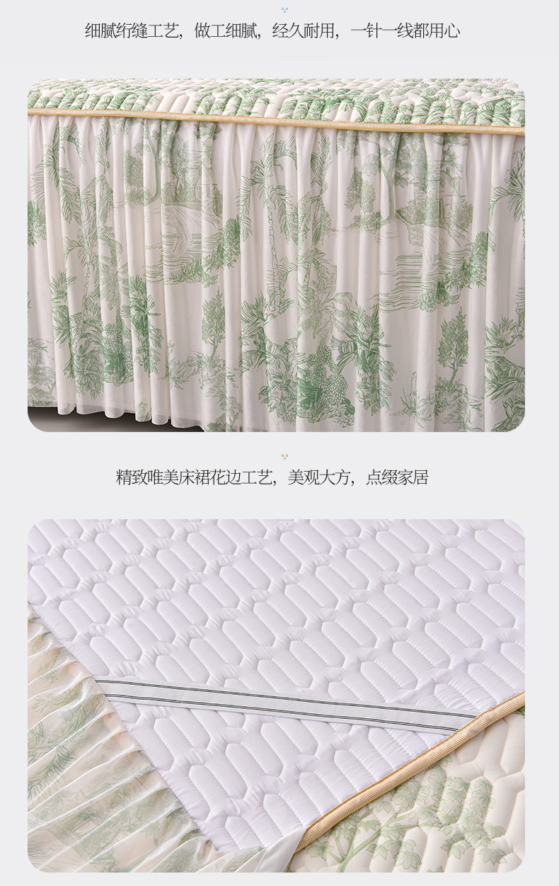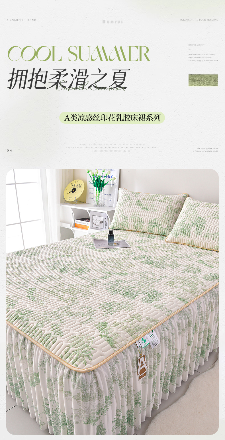 商品名称:布卢姆床垫2025新款5mm印花乳胶凉席凉感丝席床裙款 繁花-绿