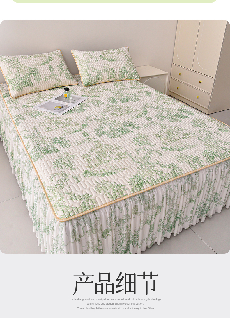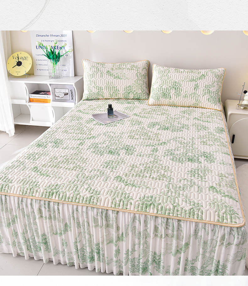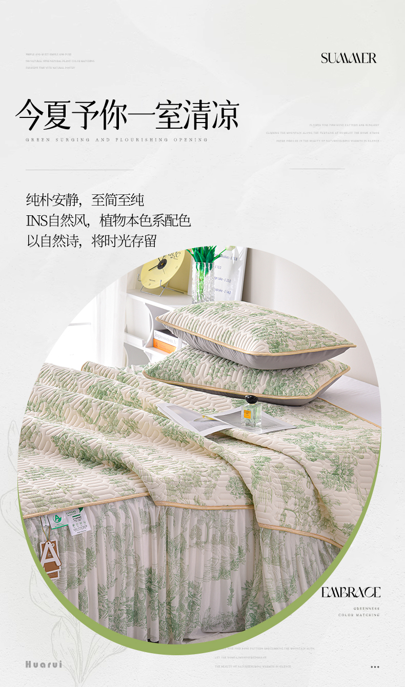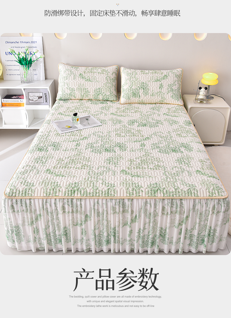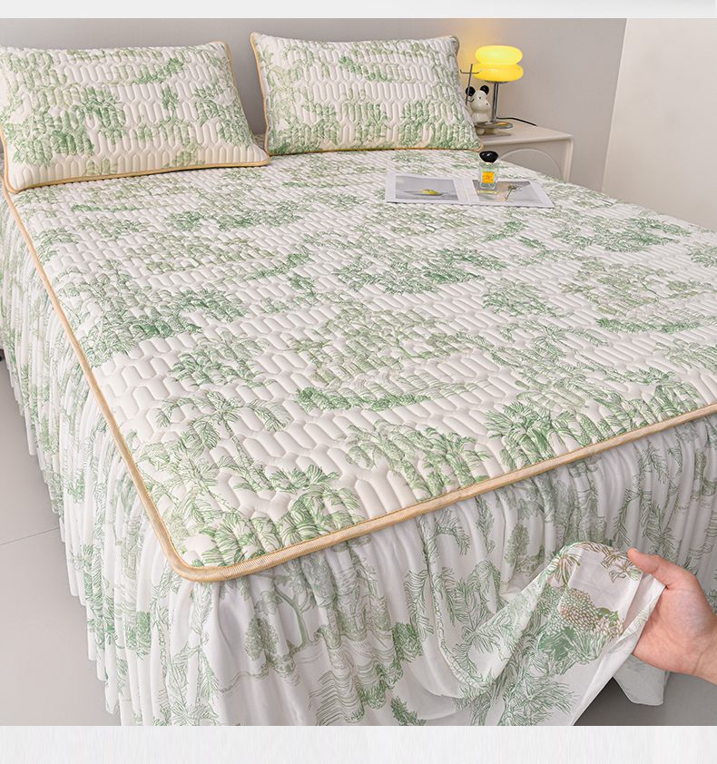 商品名称:布卢姆床垫2025新款5mm印花乳胶凉席凉感丝席床裙款 繁花-绿