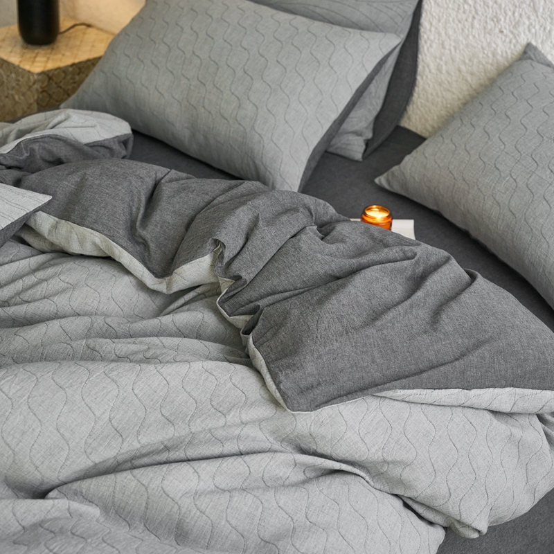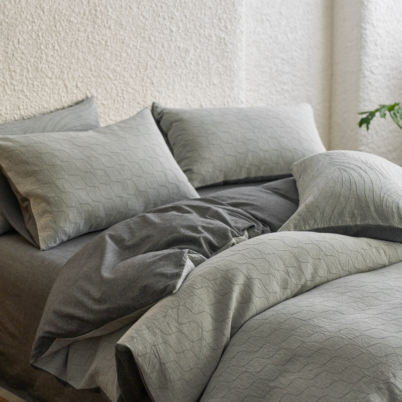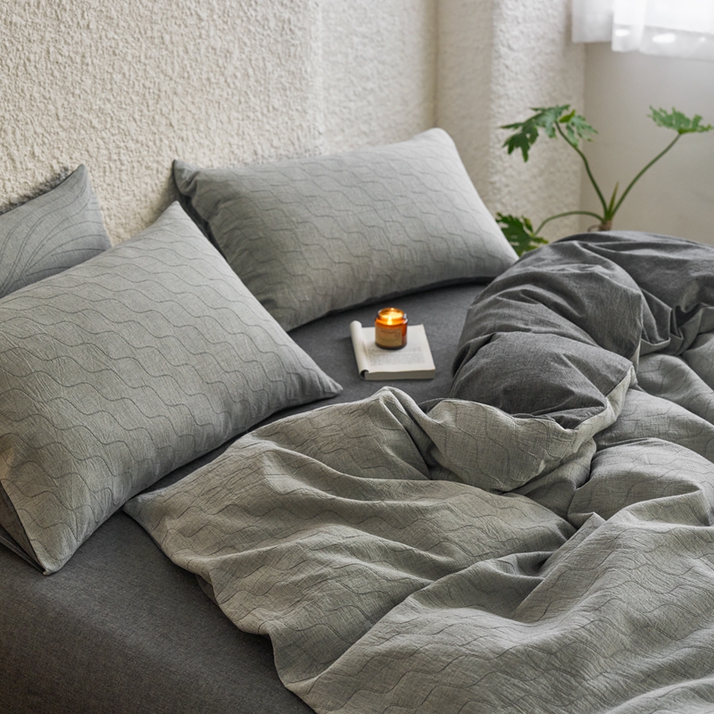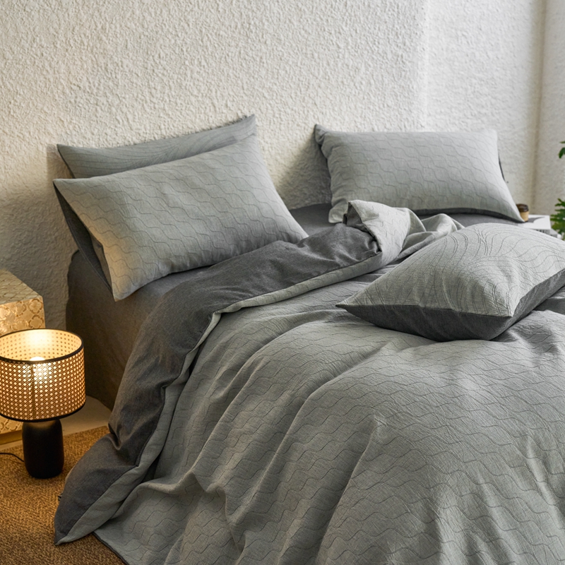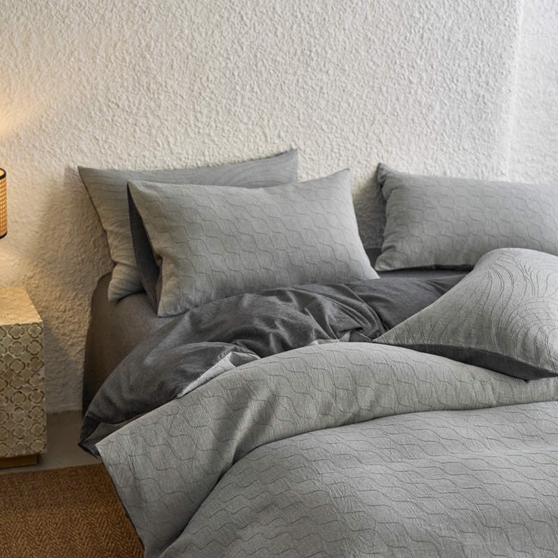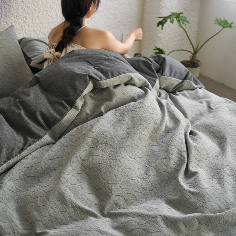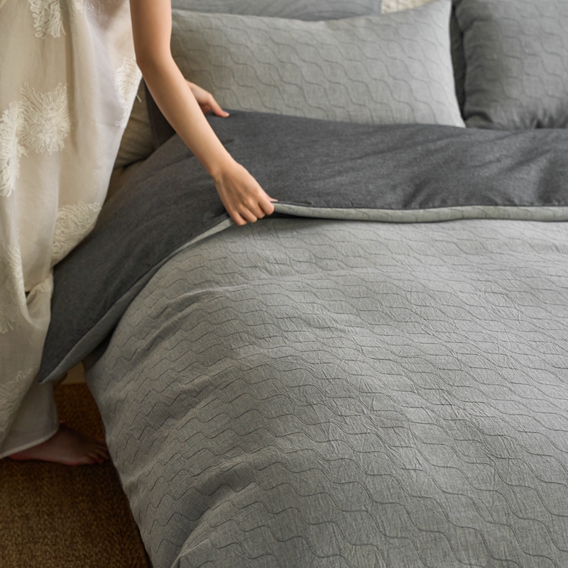 商品名称:安莱生活 2025新款双层纱色织提花波浪系列四件套 斜纹波浪 斜纹波兰-深灰