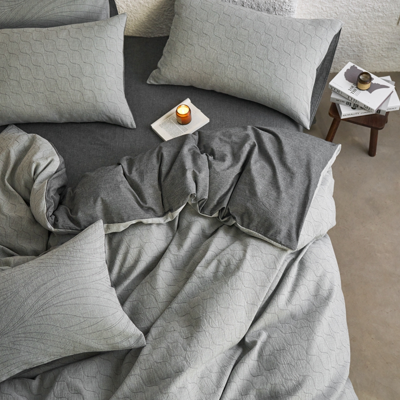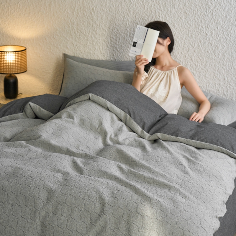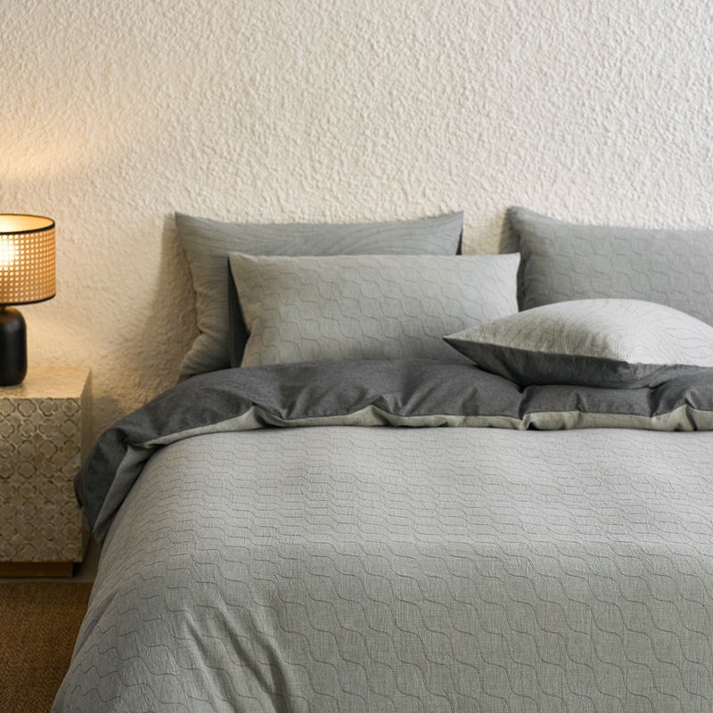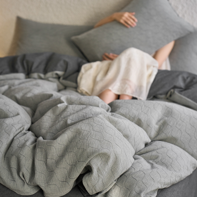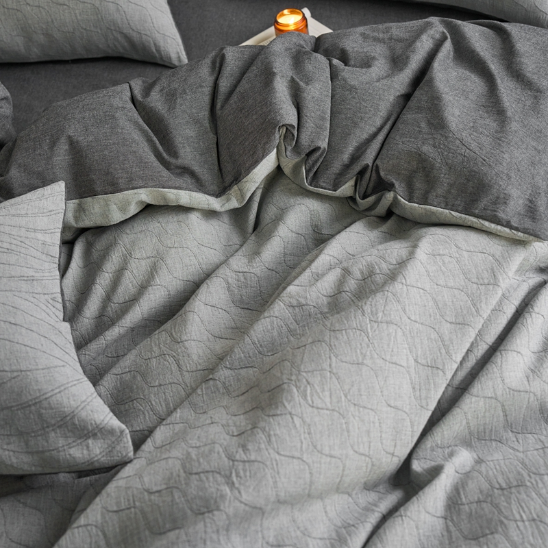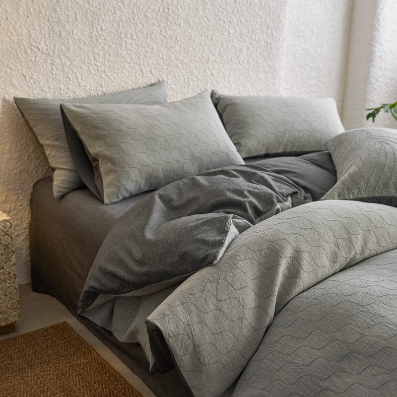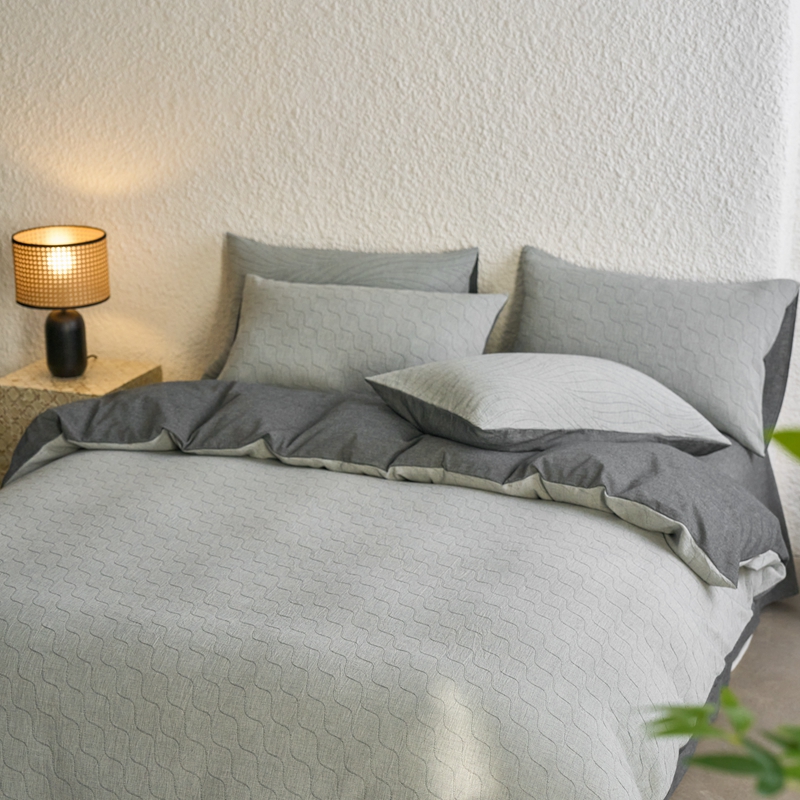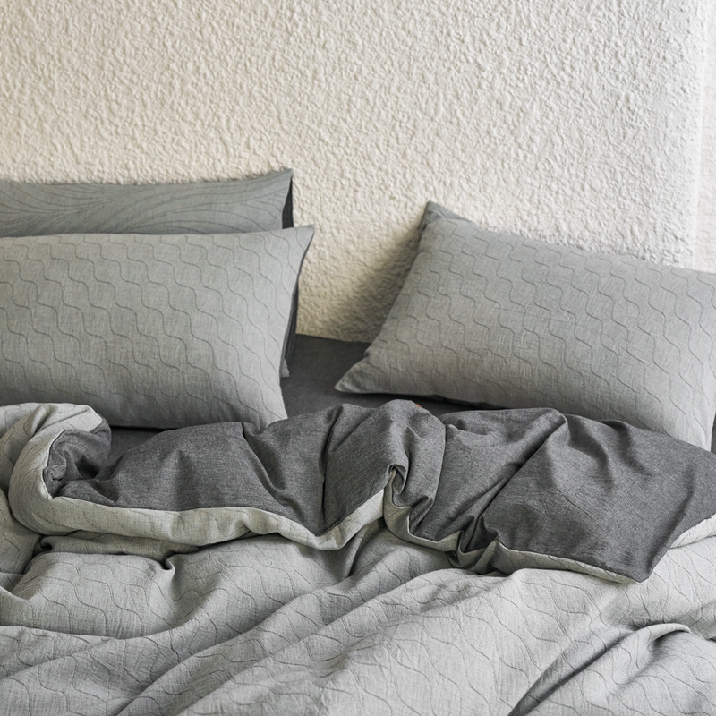 商品名称:安莱生活 2025新款双层纱色织提花波浪系列四件套 斜纹波浪 斜纹波兰-深灰