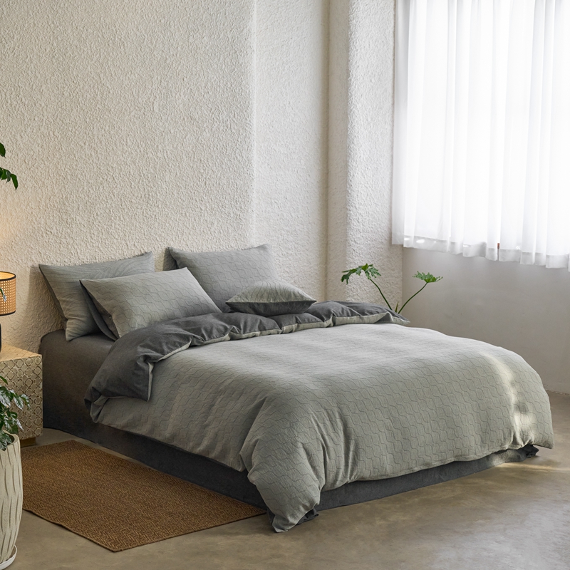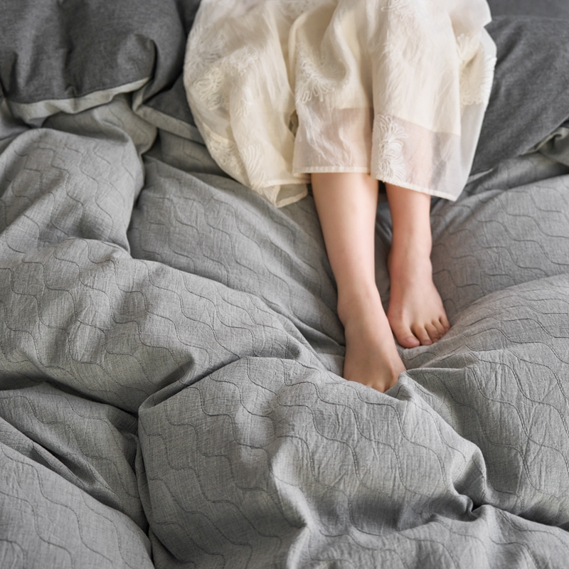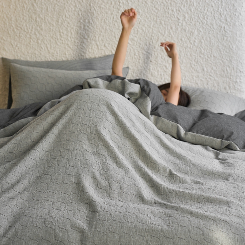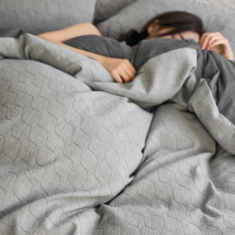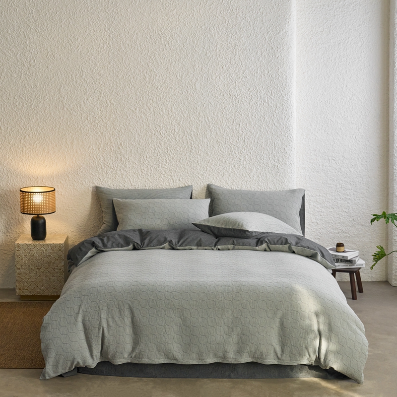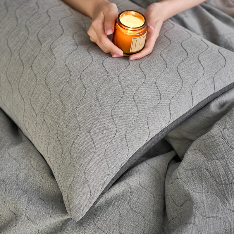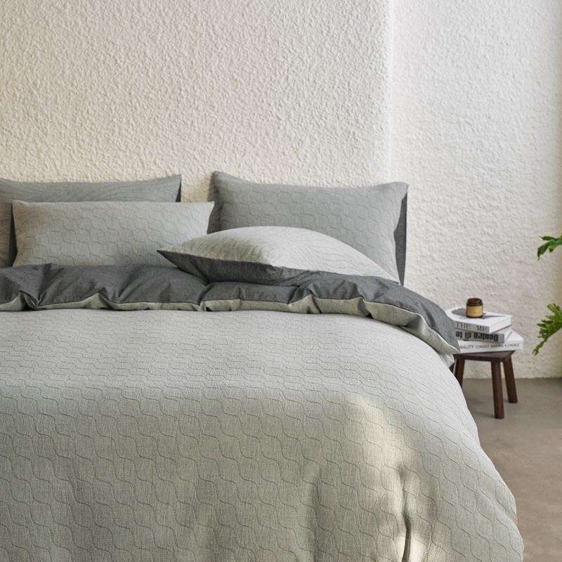 商品名称:安莱生活 2025新款双层纱色织提花波浪系列四件套 斜纹波浪 斜纹波兰-深灰