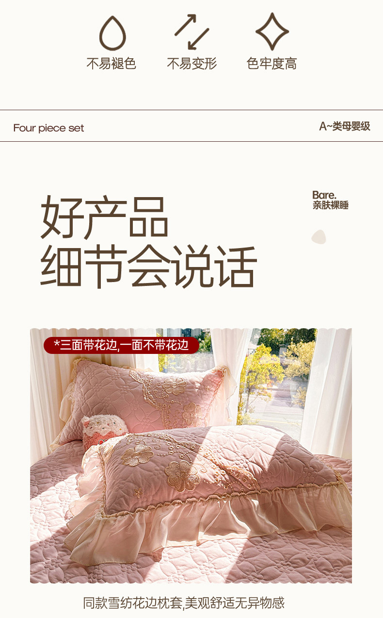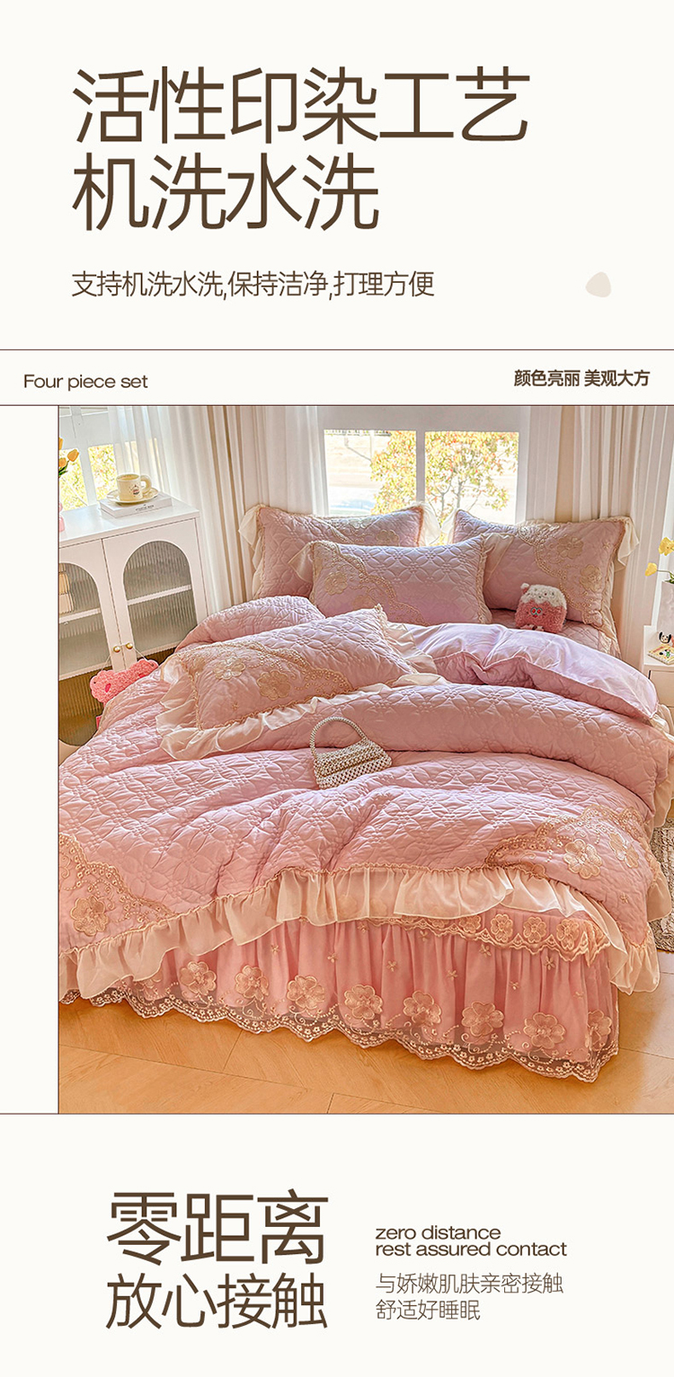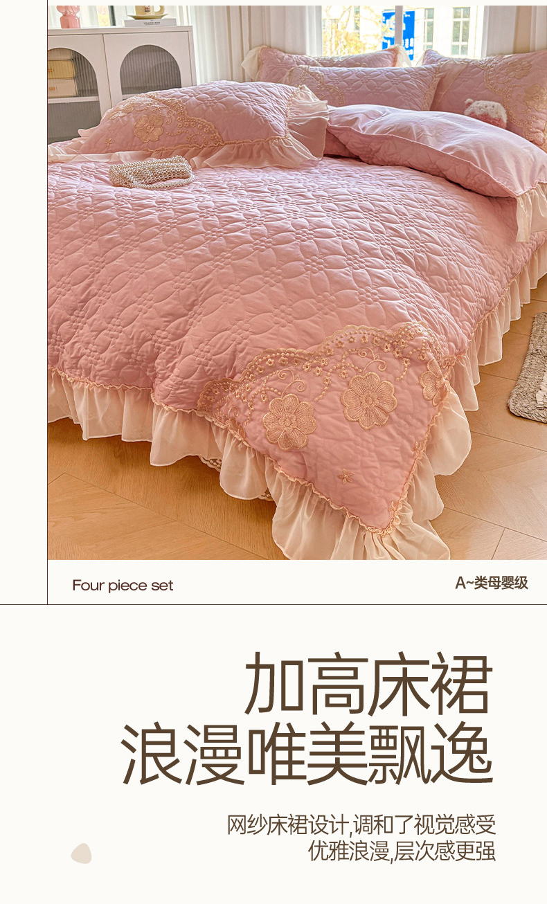 当前位置: 91家纺网 > 商品网购 > 床品套件 > 四件套 > 其它四件套 > 罗艺轩 2024新款公主风水洗棉夹棉床裙款四件套-浪漫满屋床 浪漫满屋-豆沙