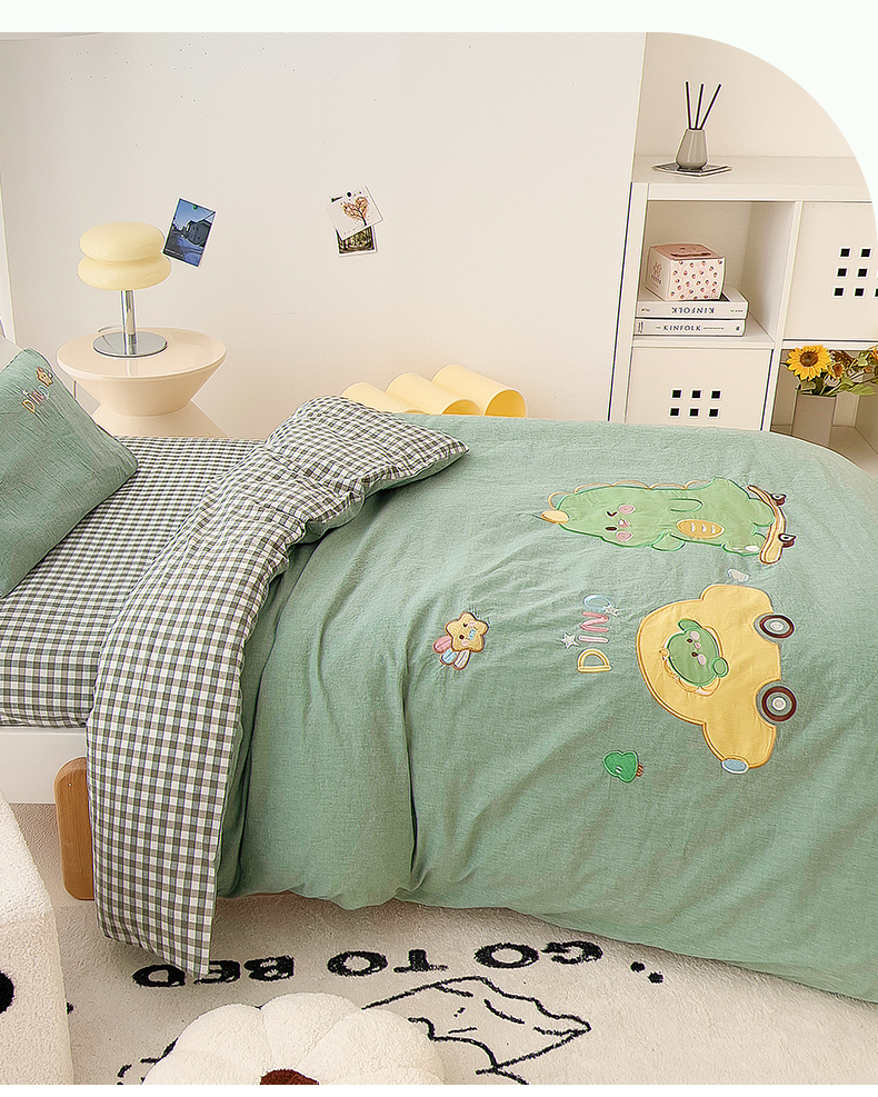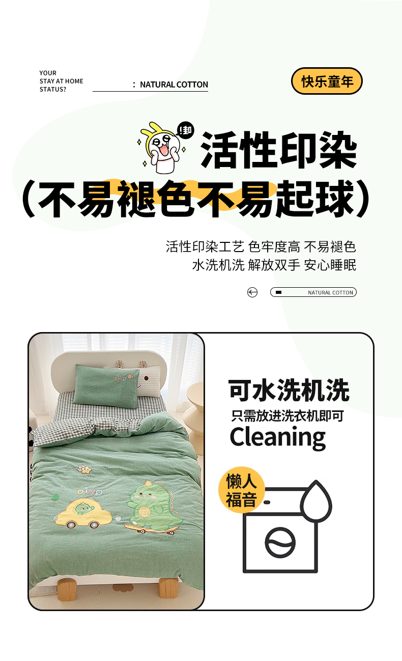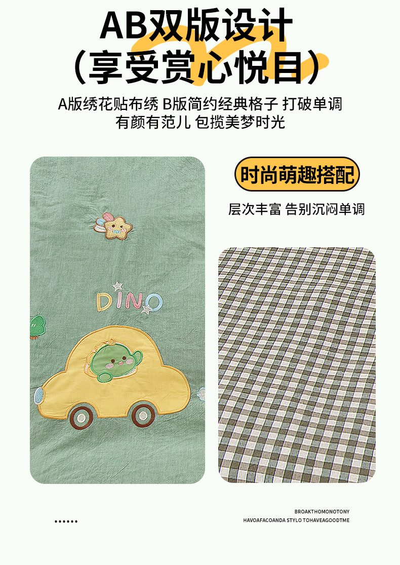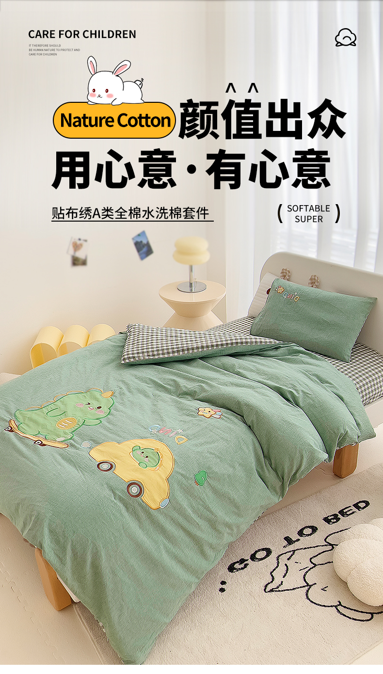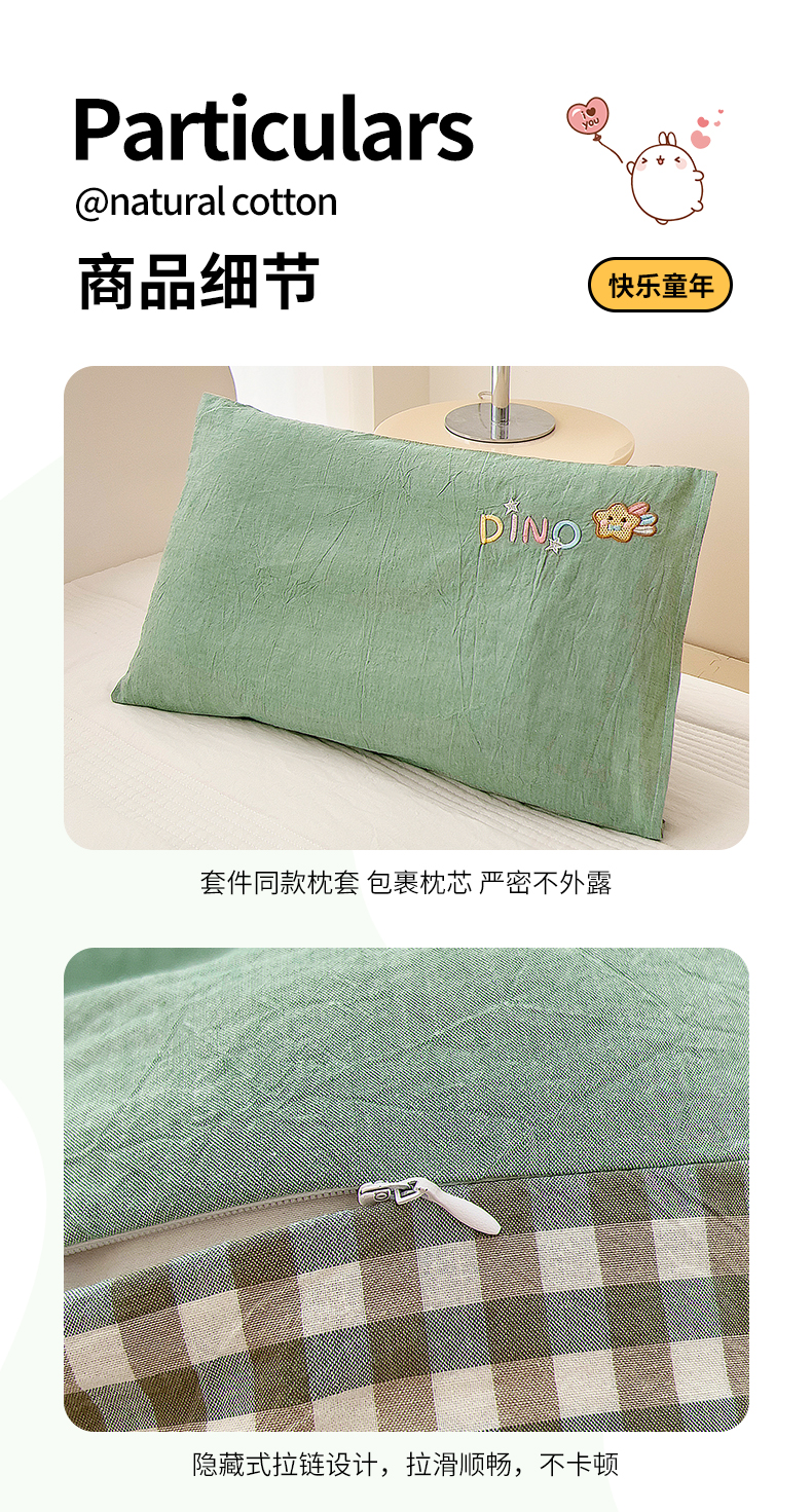 当前位置: 91家纺网 > 商品网购 > 床品套件 > 三件套 > 鱼宝 2025新款全棉水洗棉绣花幼儿园套件 滑板恐龙绿