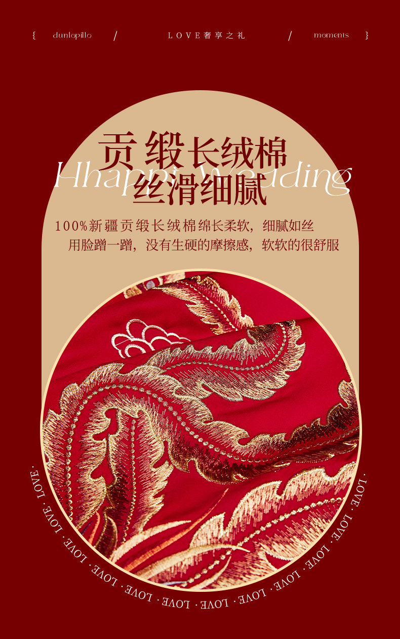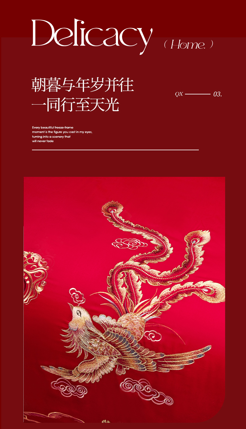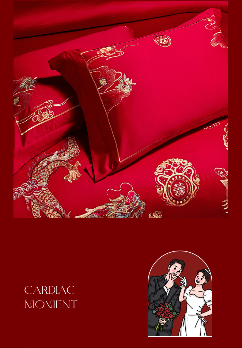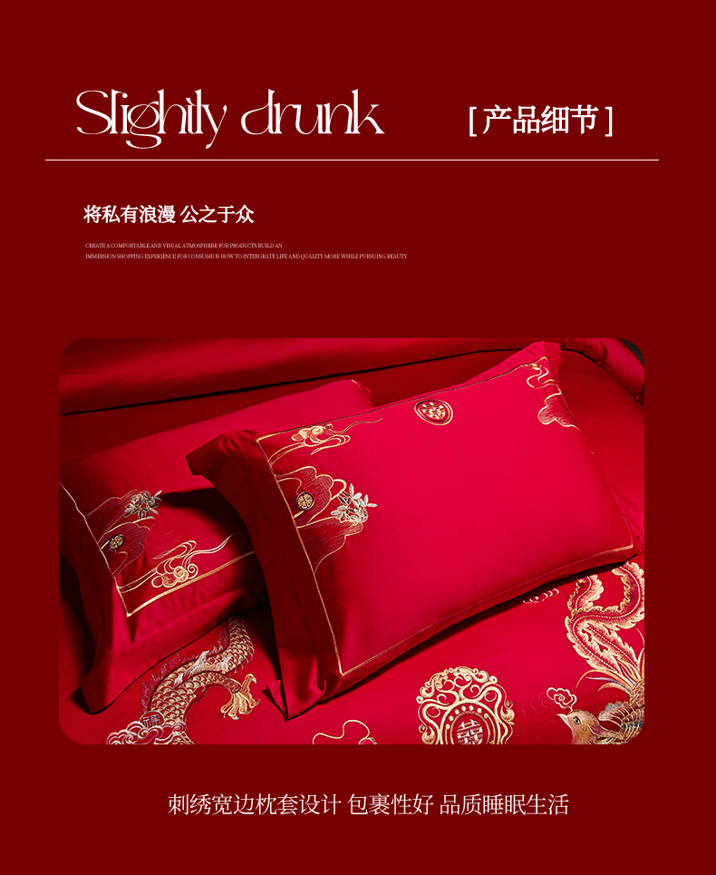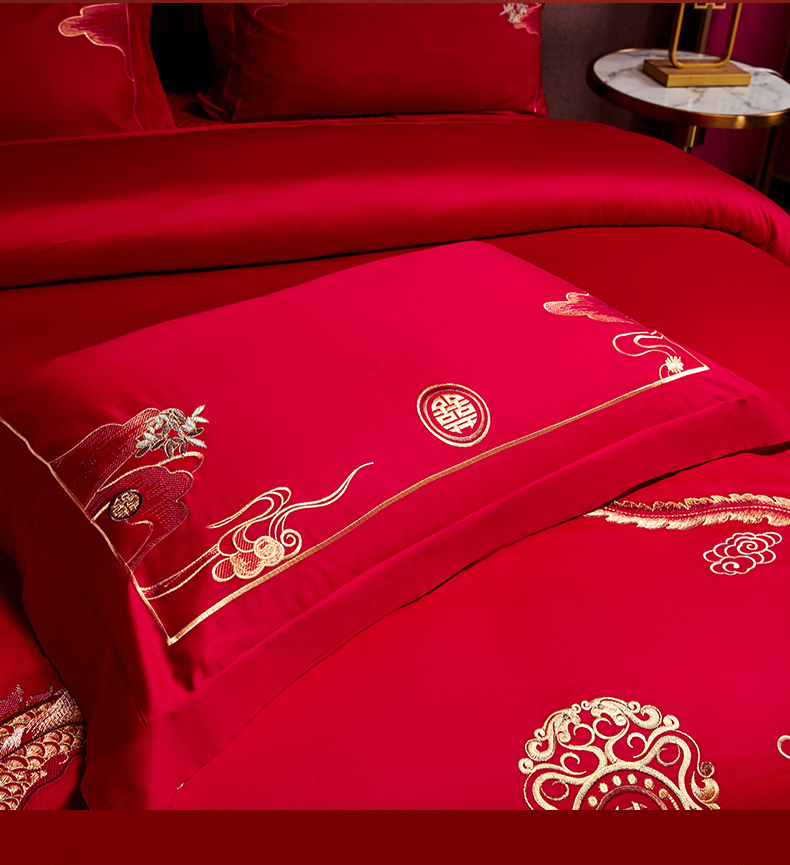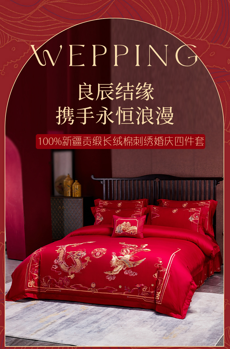 商品名称:晶缦家纺 2024纯棉全棉60支贡缎长绒棉刺绣花婚庆四件套--绣花贴边床单款 龙跃凤鸣