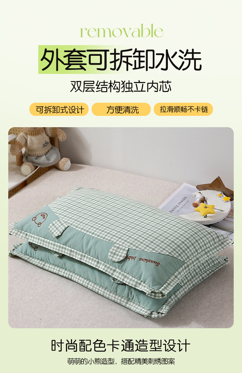 (总)梦叶草 2025新款全棉刺绣枕芯萌芽熊荞麦枕头,萌芽熊-淡天蓝35*60cm,萌芽熊-咖色35*60cm,萌芽熊-蓝色35*60cm,萌芽熊-绿色35*60cm,萌芽熊-墨绿35*60cm