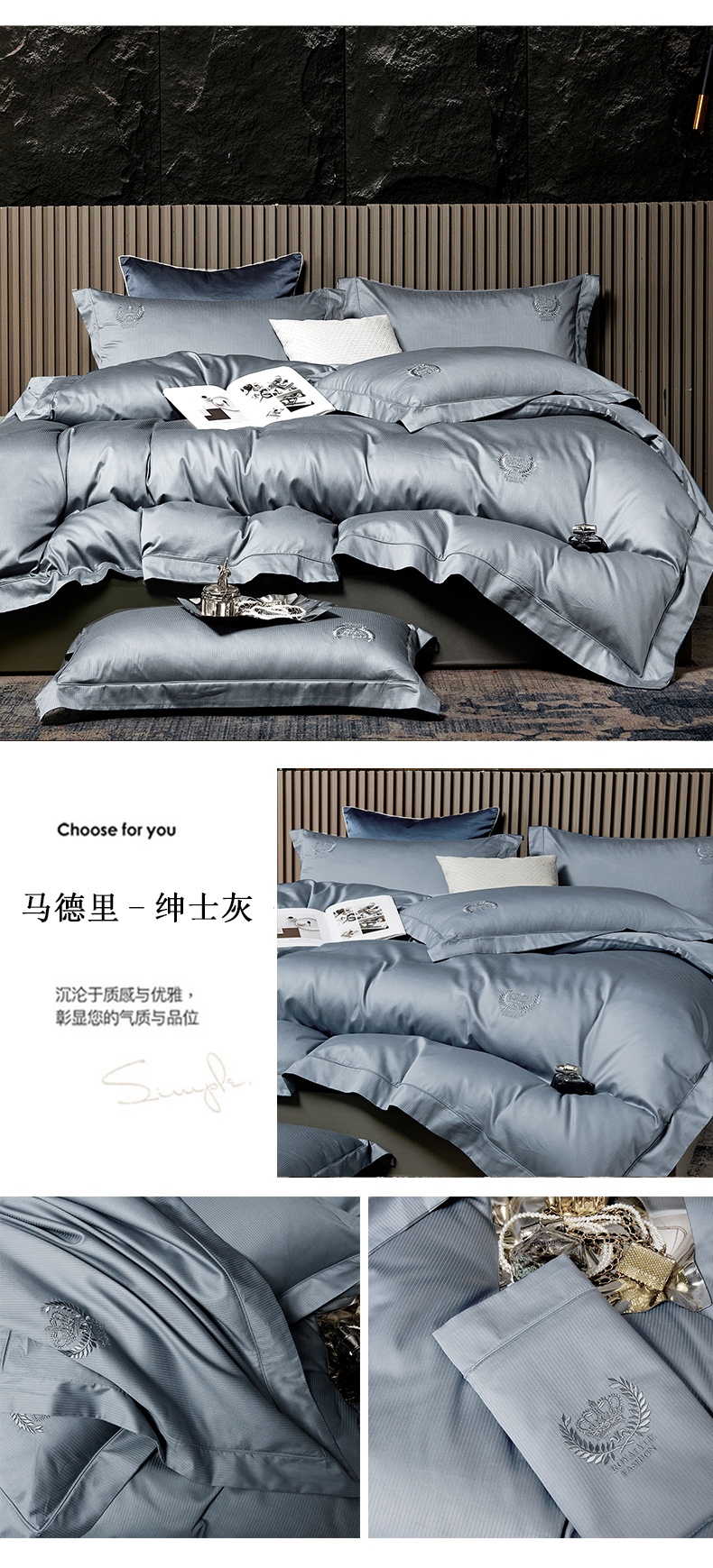 淳绵家居 2024新款50*50S双股长绒棉提花刺绣四件套-马德里 绅士灰