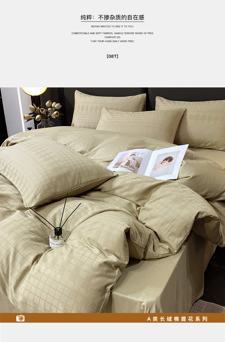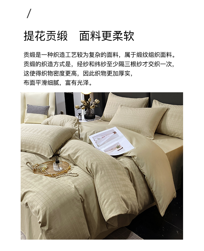 当前位置: 91家纺网 > 商品网购 > 床品套件 > 四件套 > 全棉普通四件套 > 金鑫汇 2024新款提花小方格全棉套件单品系列-四件套 风吹麦浪