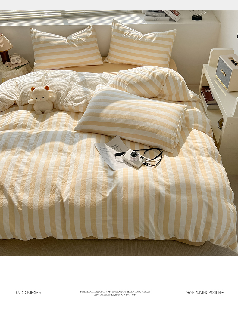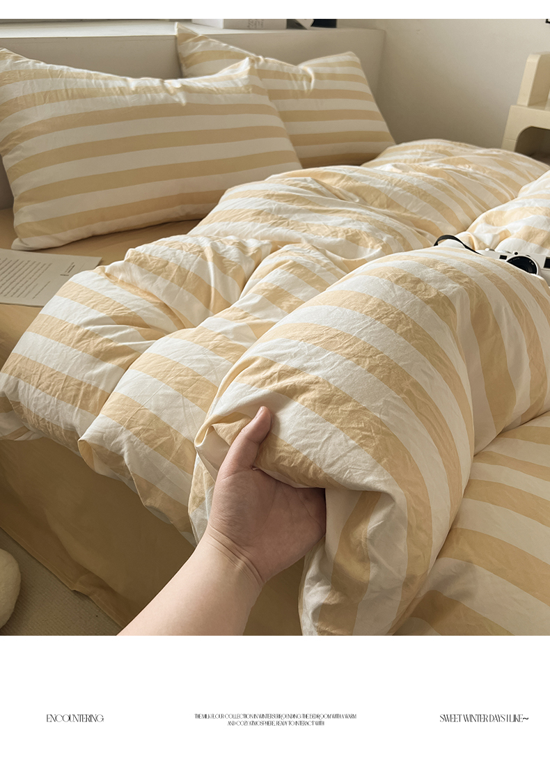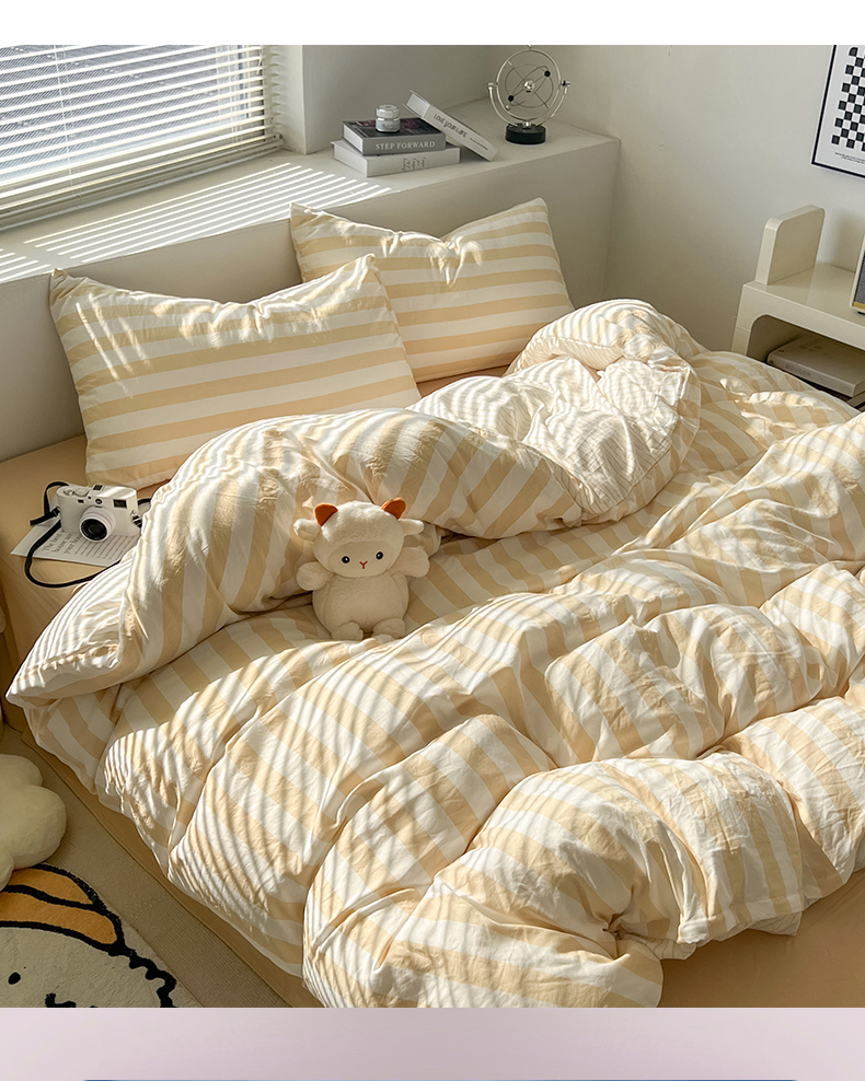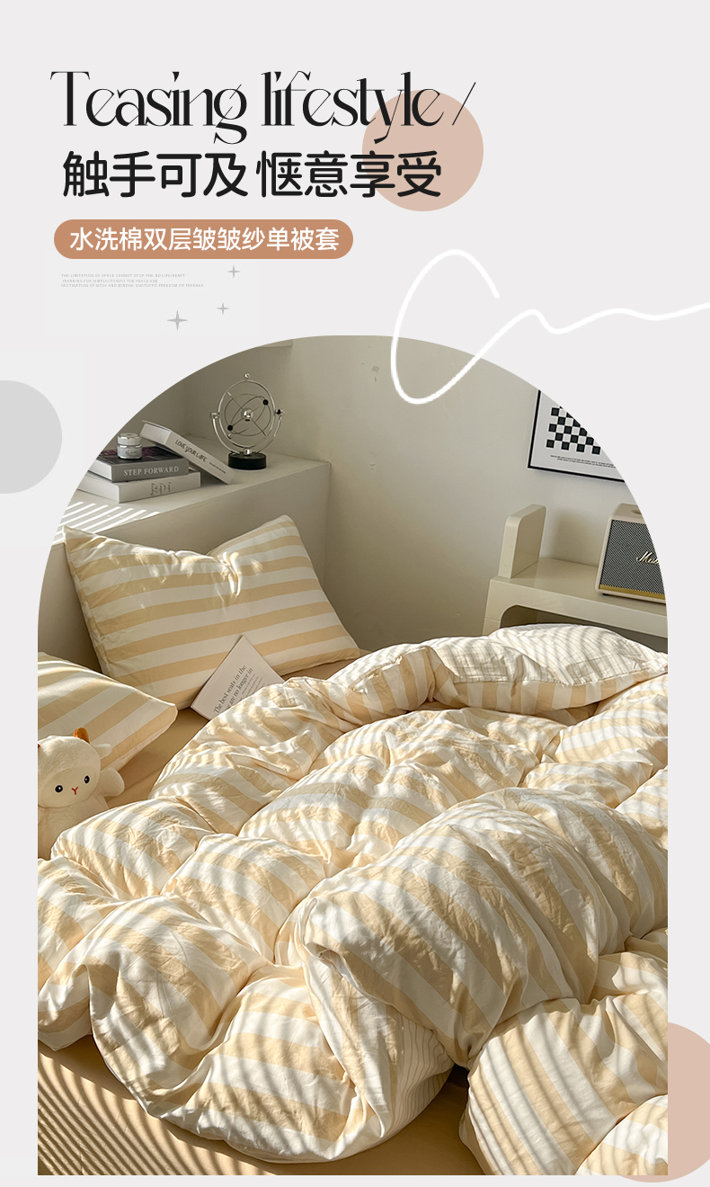 当前位置: 91家纺网 > 商品网购 > 床上用品 > 被套 > 多品 2024新款高克重水洗棉双层纱皱皱纱单品被套 日系黄条