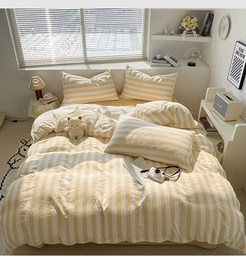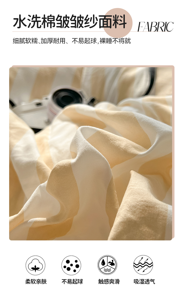 • 91家纺网 家纺一手货源 找家纺 多品 2024新款高克重水洗棉双层纱皱皱纱单品被套 日系黄条