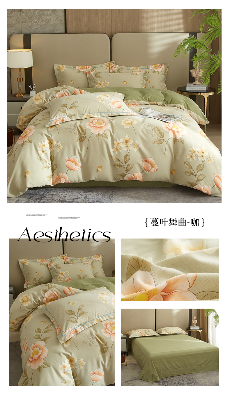 商品名称:金纱玉纺家纺 2024新款加厚AB版四件套蔓叶舞曲-咖