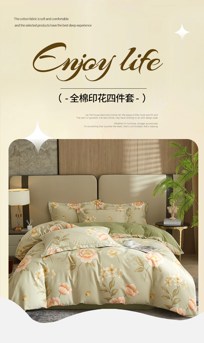 金纱玉纺家纺 2024新款全棉大版印花13372四件套 幽香恋曲,幽香恋曲