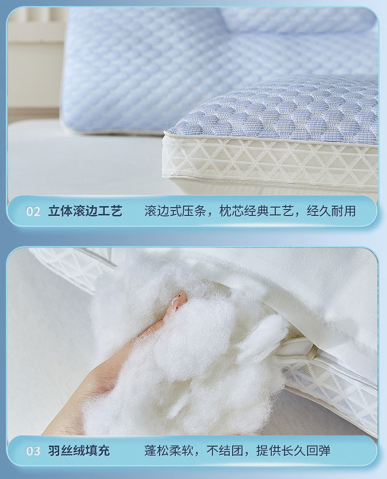 (总)梵希良品家纺 2024新款双层三枕合一护颈枕助睡眠枕头枕芯,低枕800g,中枕900g,高枕1000g