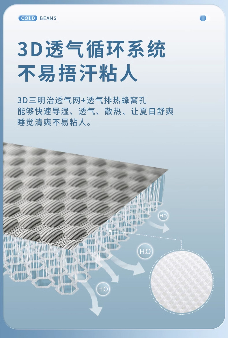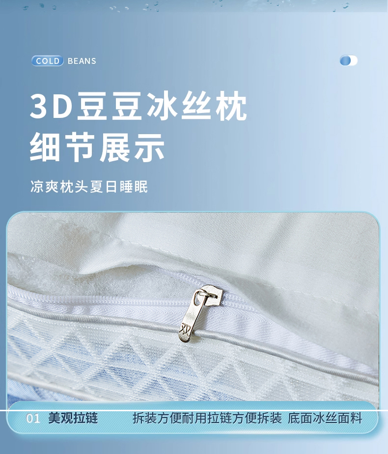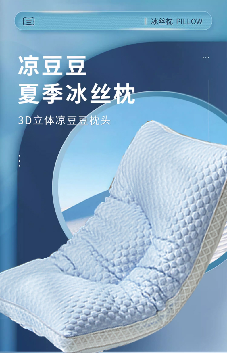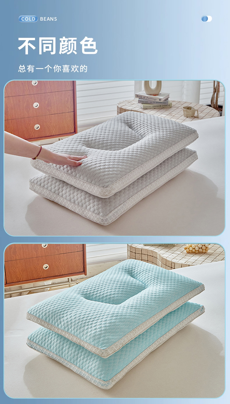 梵希良品家纺 2024新款冰丝凉豆豆软枕头护颈椎助睡眠枕芯 冰豆豆定型-蓝色中枕48x74cm/只
