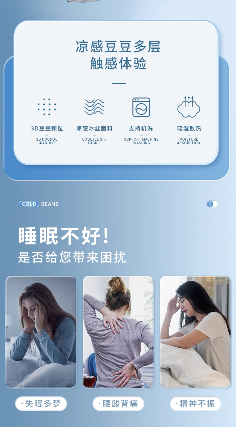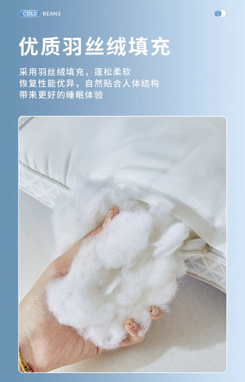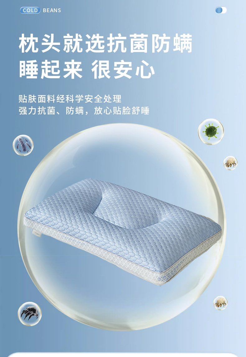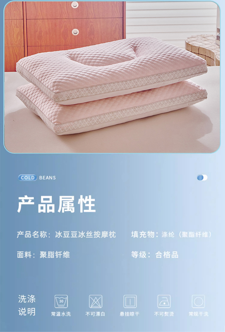 商品名称:梵希良品家纺 2024新款冰丝凉豆豆软枕头护颈椎助睡眠枕芯 冰豆豆定型-蓝色中枕48x74cm/只