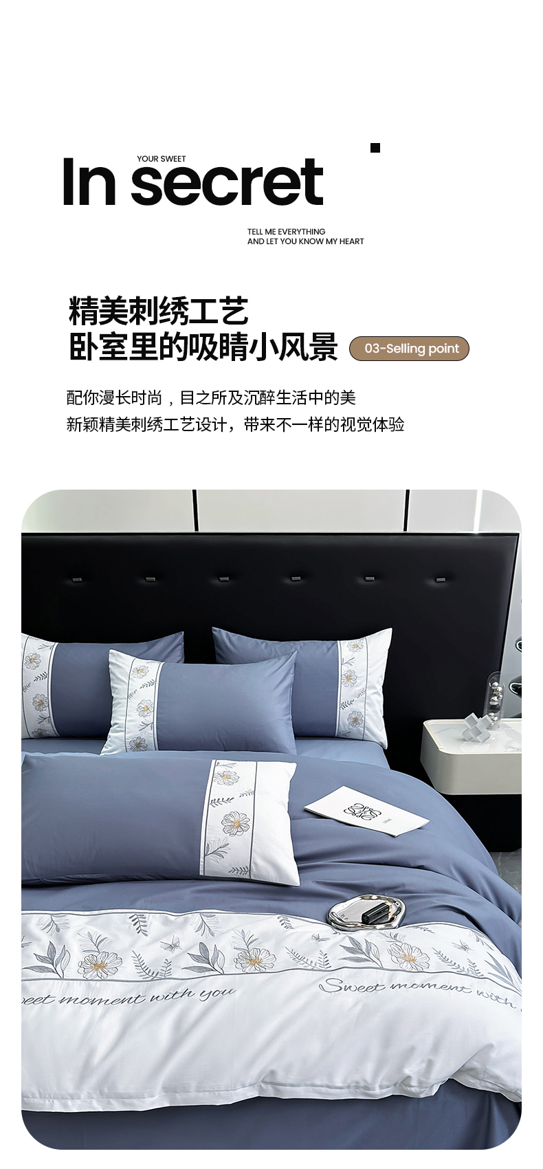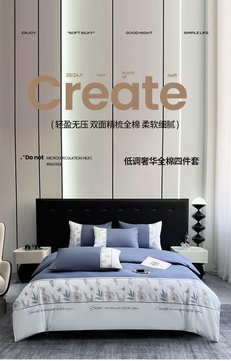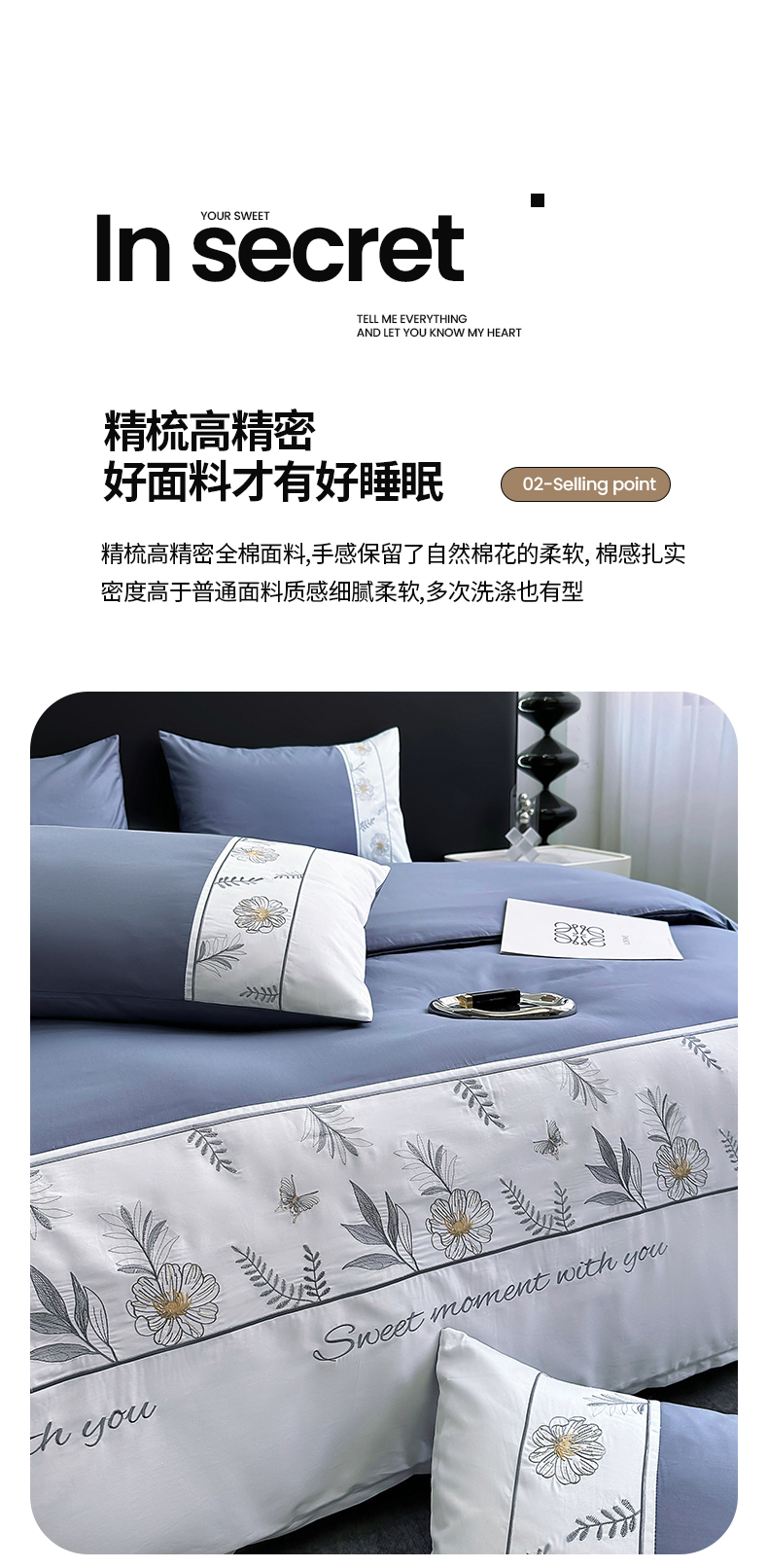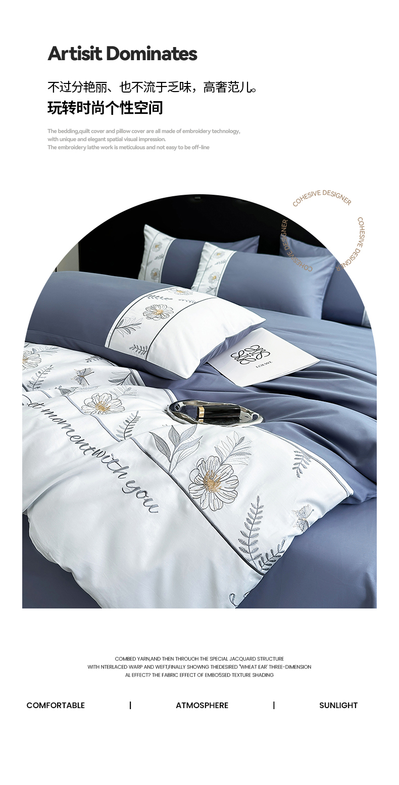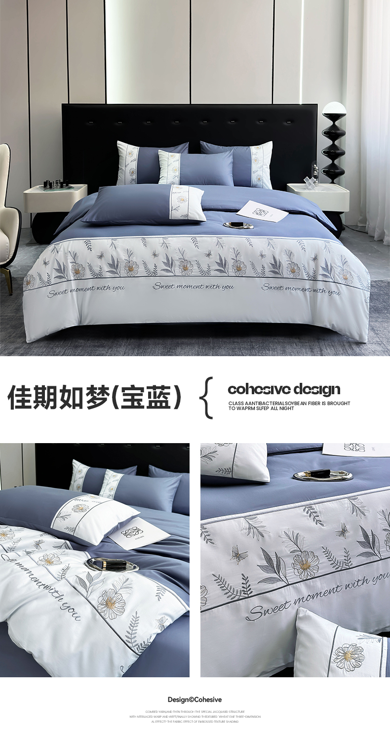 商品名称:2024秋冬新款高密度全棉四件套-佳期如梦 佳期如梦(宝蓝)
