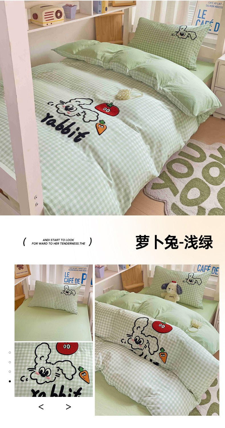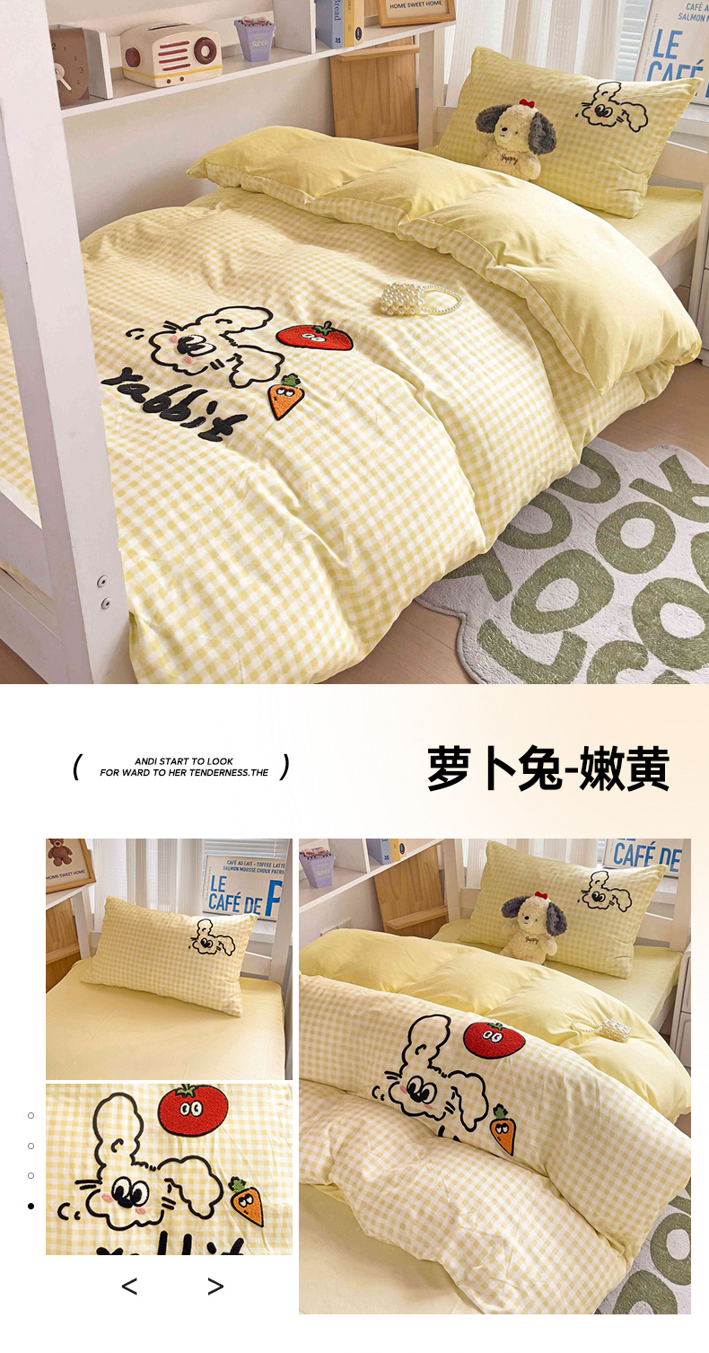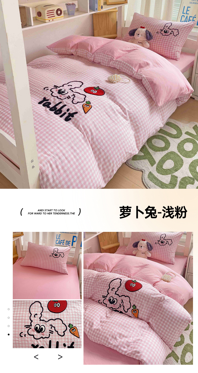 当前位置: 91家纺网 > 商品网购 > 床品套件 > 四件套 > 水洗棉四件套 > (总)尤米 2024新款可爱萝卜兔水洗棉毛巾绣四件套 学生床