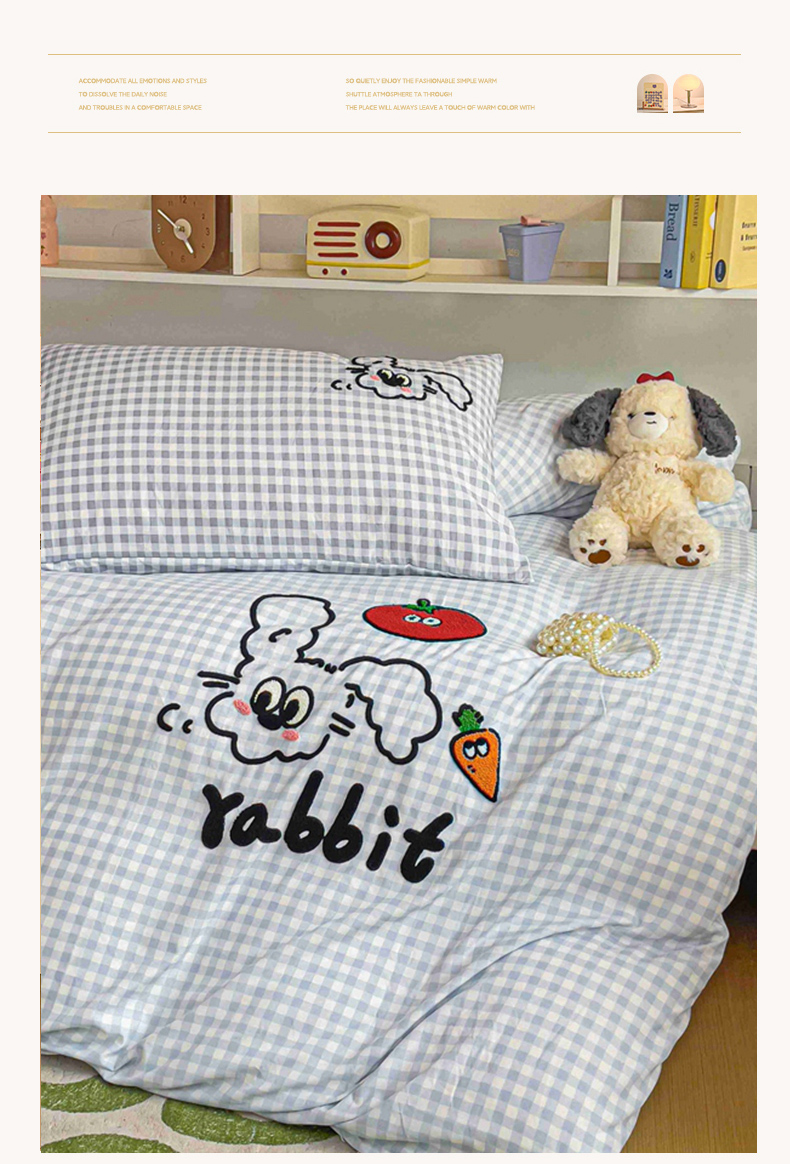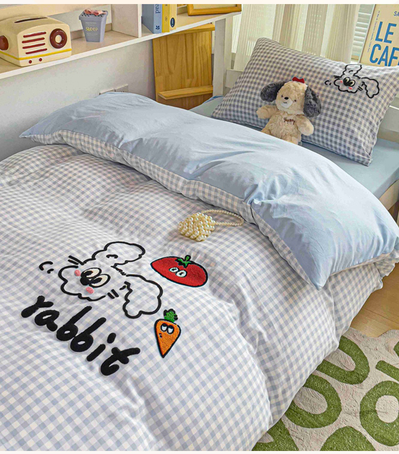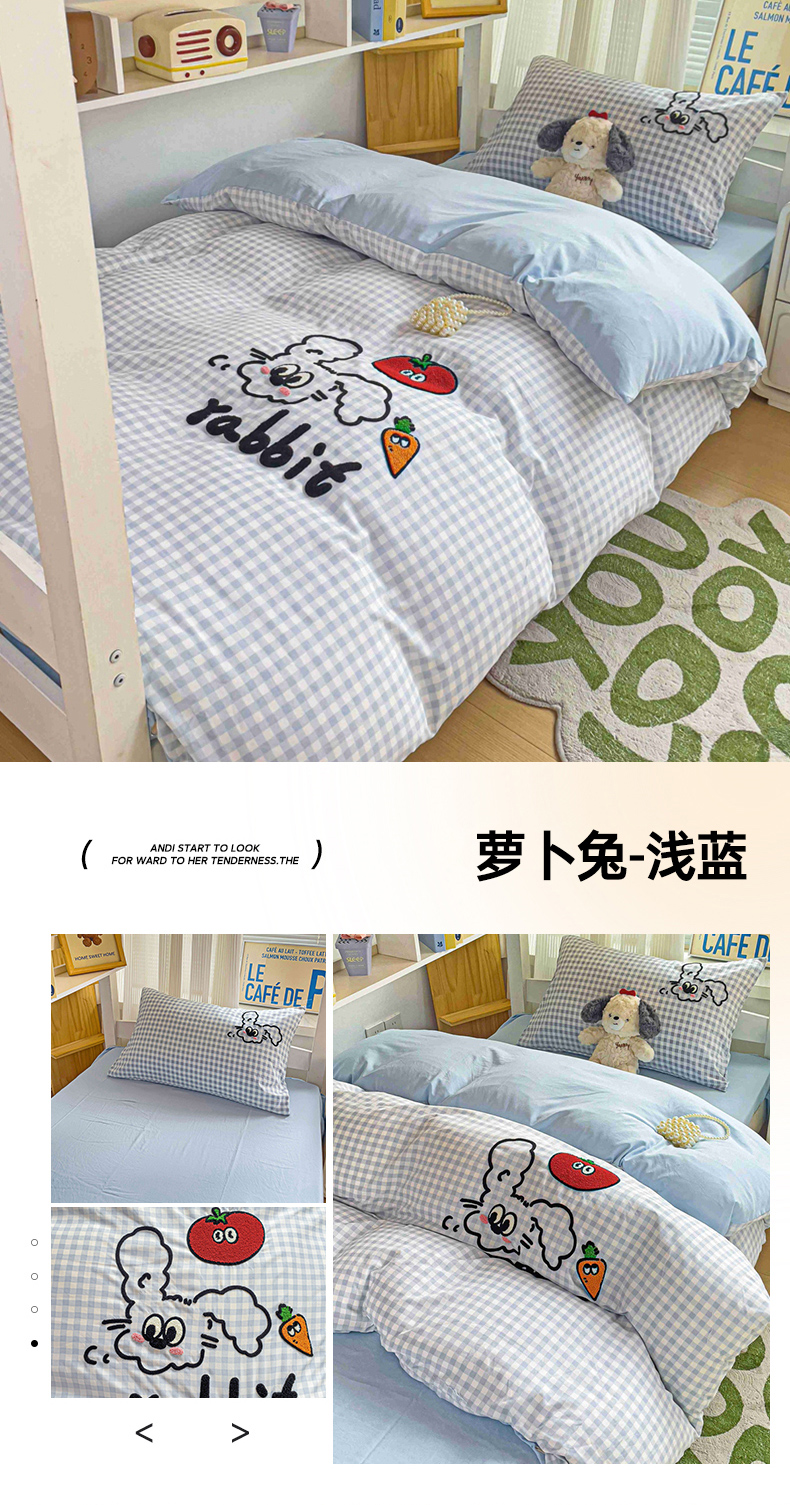 当前位置: 91家纺网 > 商品网购 > 床品套件 > 四件套 > 水洗棉四件套 > (总)尤米 2024新款可爱萝卜兔水洗棉毛巾绣四件套 学生床
