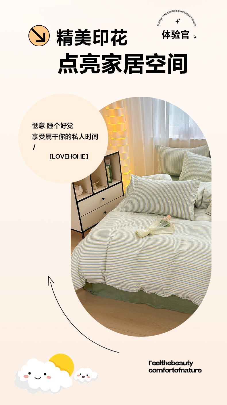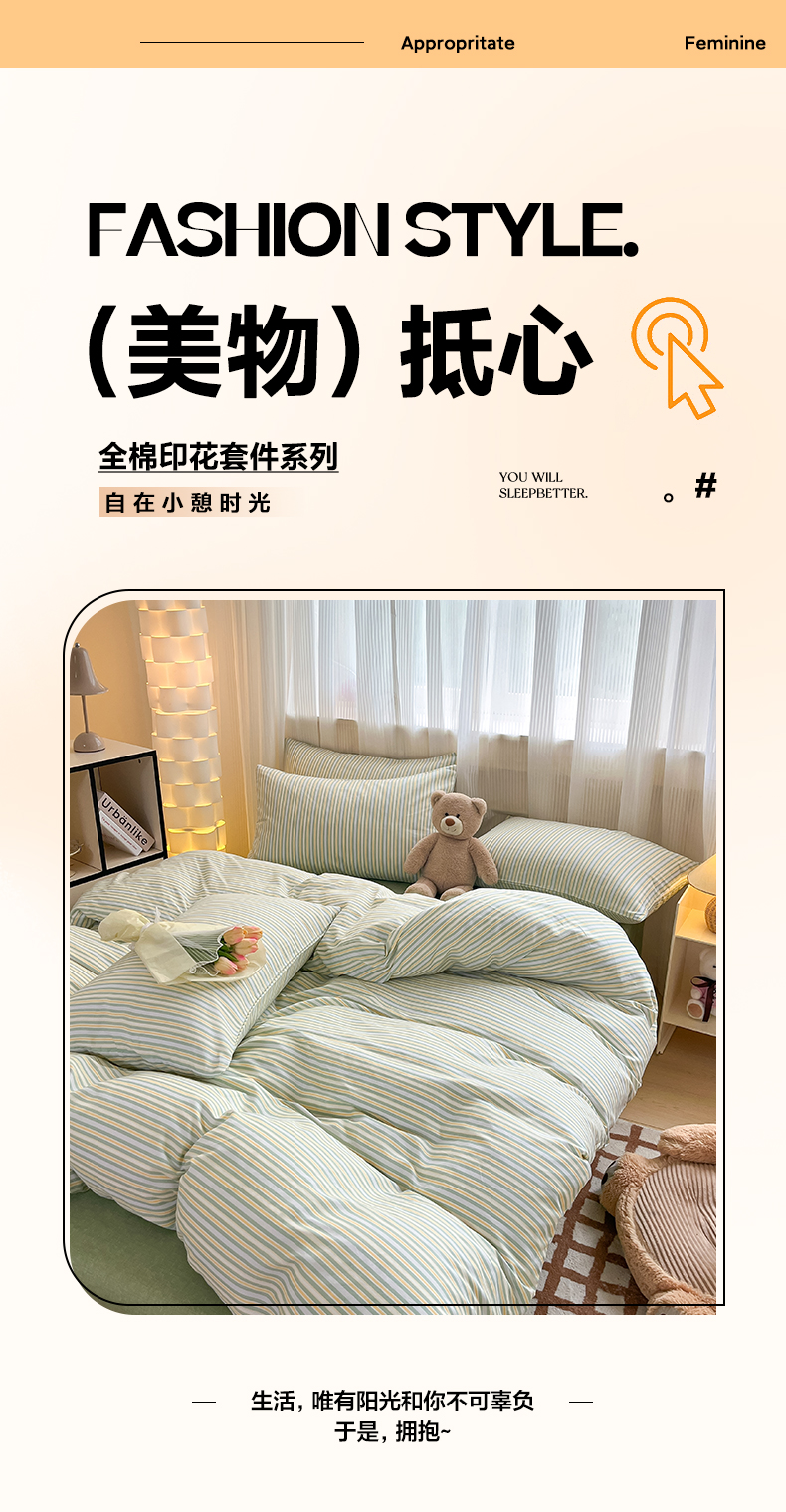 当前位置: 91家纺网 > 商品网购 > 床品套件 > 四件套 > 全棉普通四件套 > 雅居纺 2024新款全棉印花四件套 北欧细条