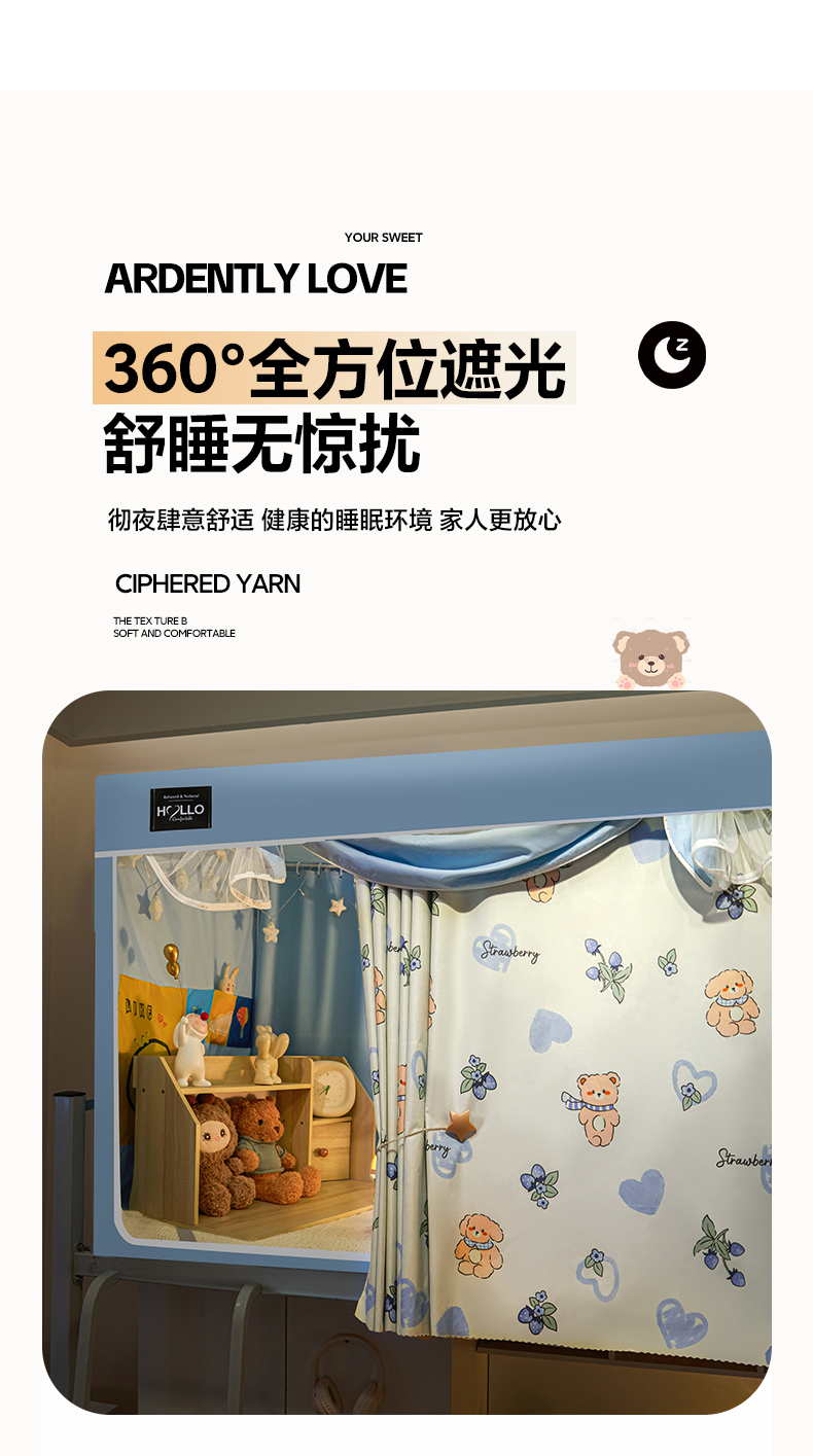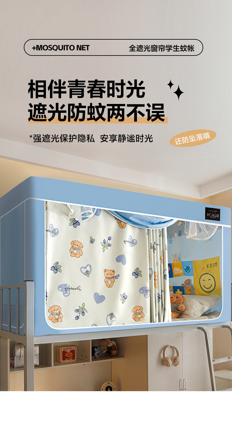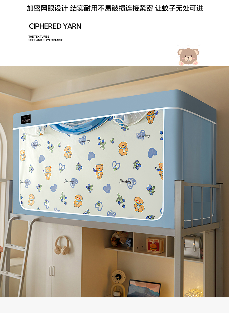(总)世婕 2025新款防蚊帐纱植绒遮光帘二合一双层学生蚊帐系列-提花款,提花款-多多熊,提花款-粉草莓兔,提花款-卡其,提花款-抹茶绿,提花款-水兰,提花款-贪吃熊,提花款-小卡皮巴拉,提花款-熊猫,提花款-眼睛熊,提花款-樱花粉,提花款-郁金香