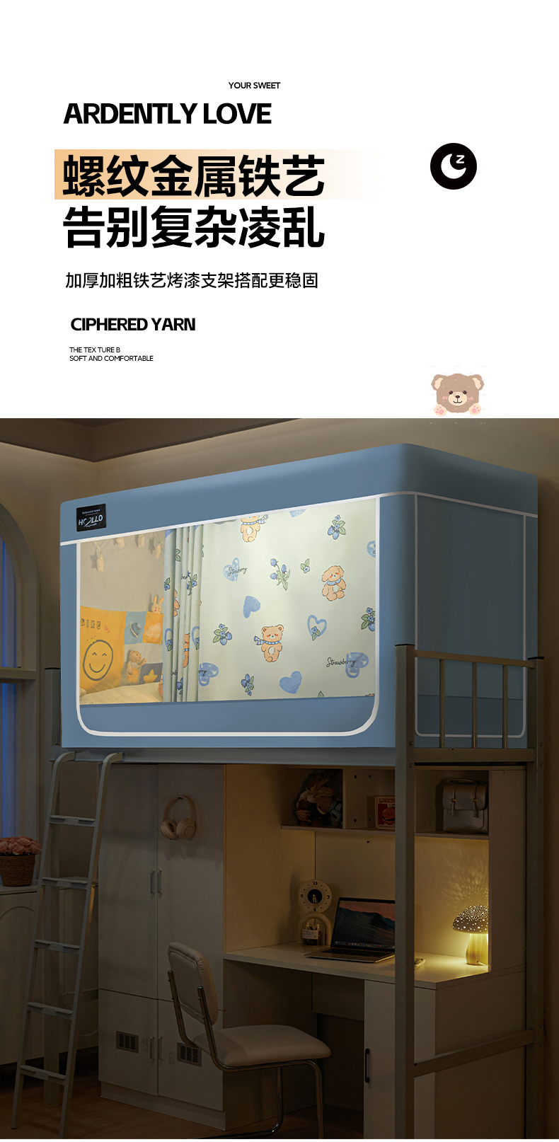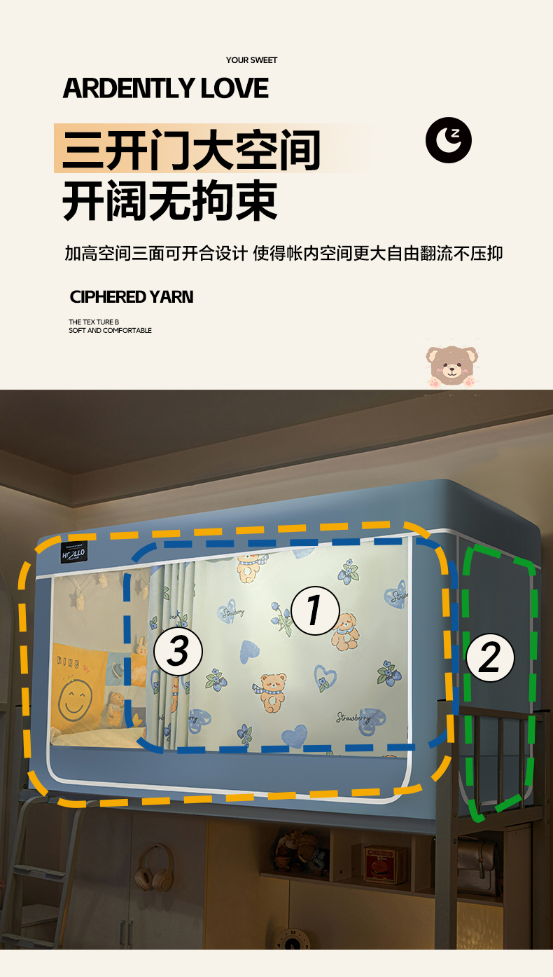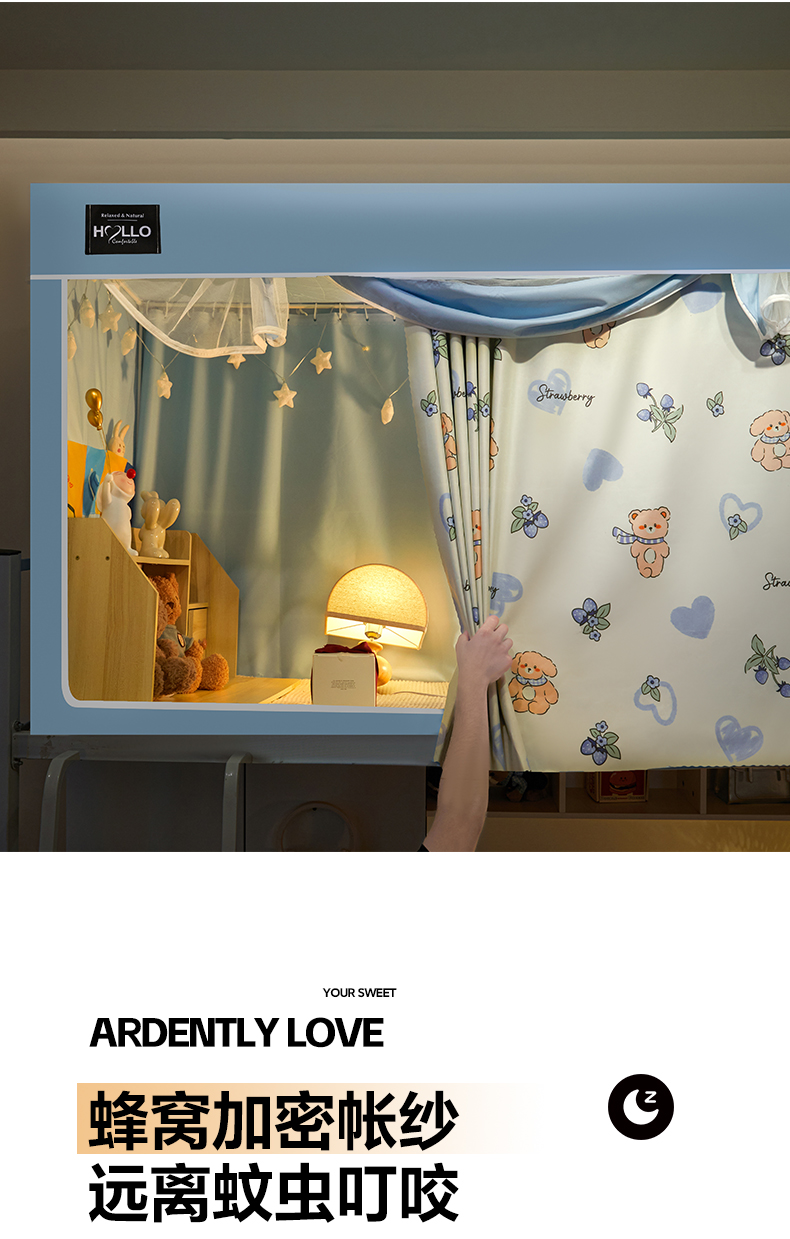 (总)世婕 2025新款防蚊帐纱植绒遮光帘二合一双层学生蚊帐系列-提花款,提花款-多多熊,提花款-粉草莓兔,提花款-卡其,提花款-抹茶绿,提花款-水兰,提花款-贪吃熊,提花款-小卡皮巴拉,提花款-熊猫,提花款-眼睛熊,提花款-樱花粉,提花款-郁金香