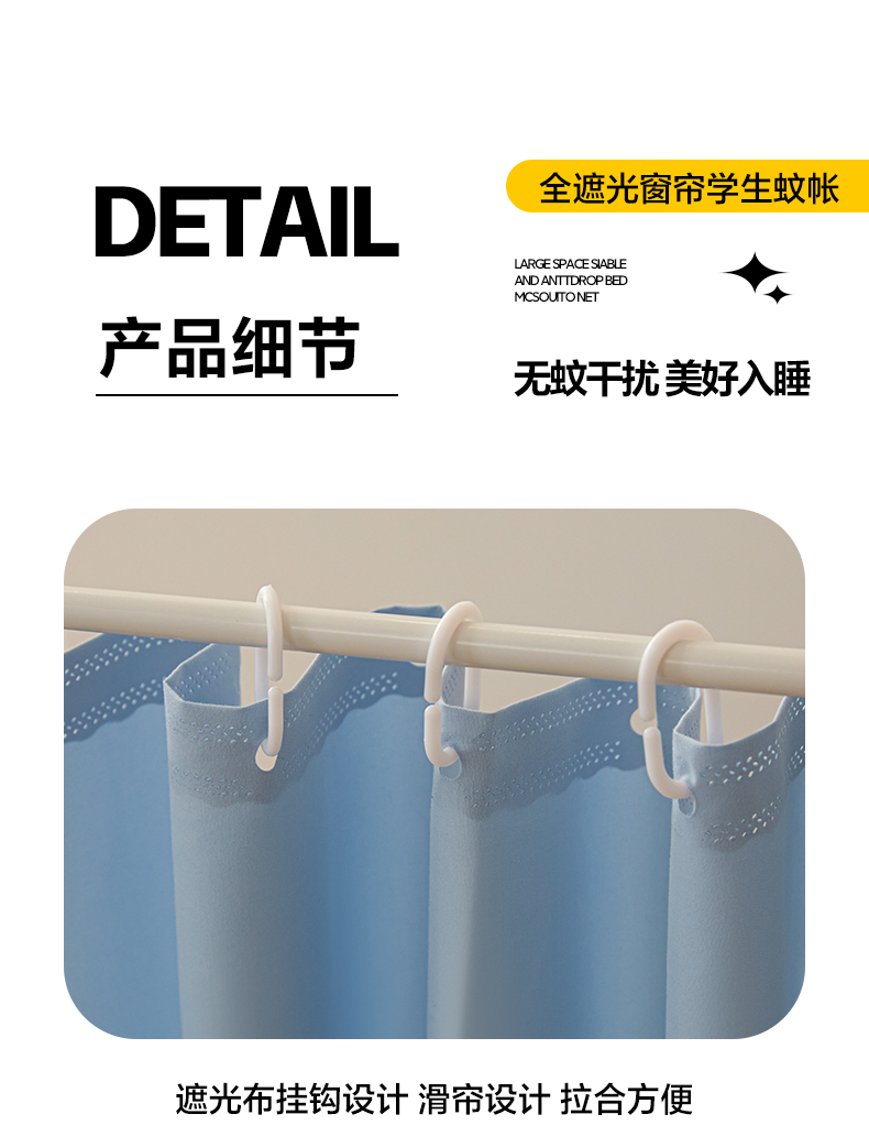 商品名称:世婕 2025新款A类全遮光窗帘三开门大版学生蚊帐 玉兔蓝