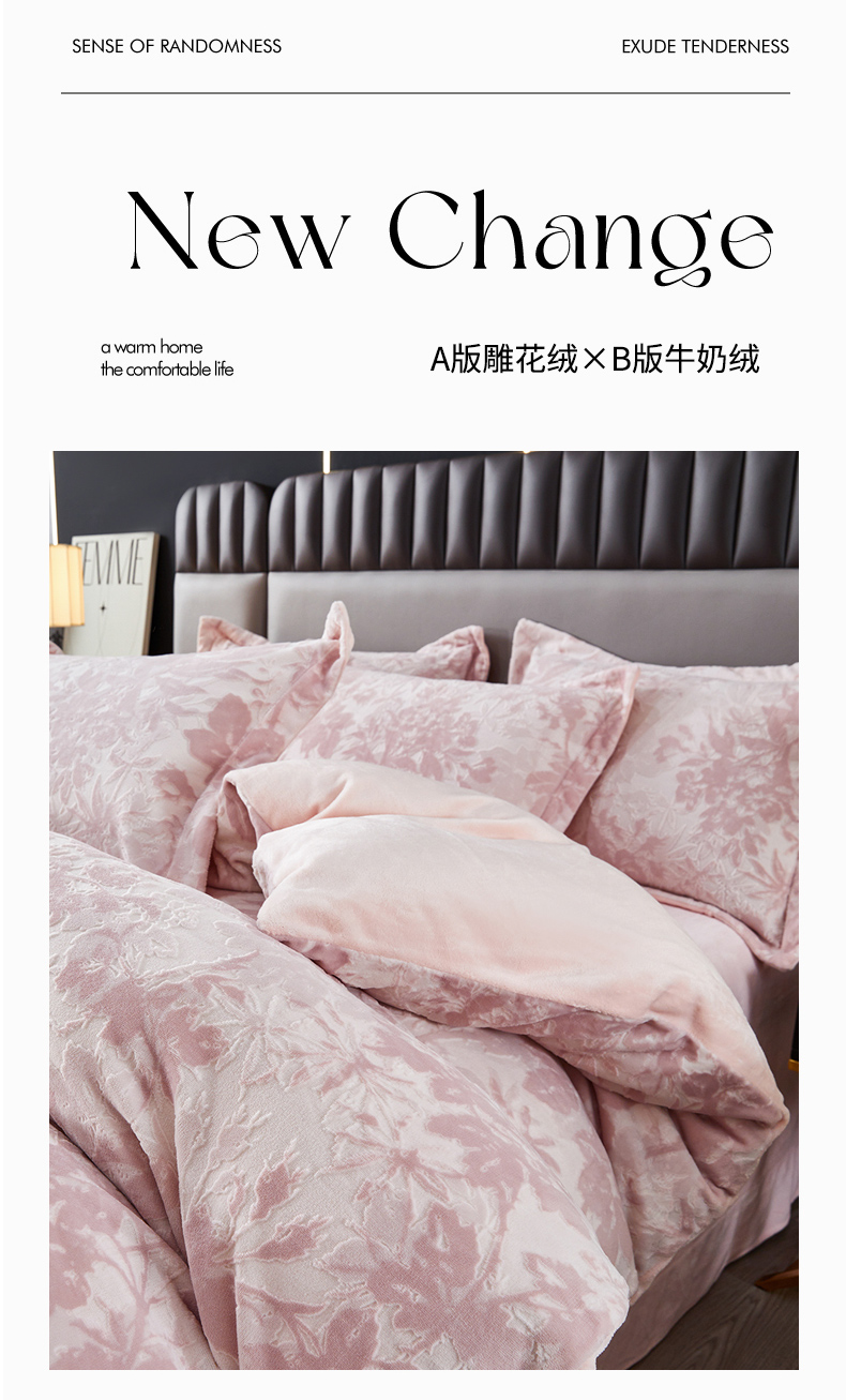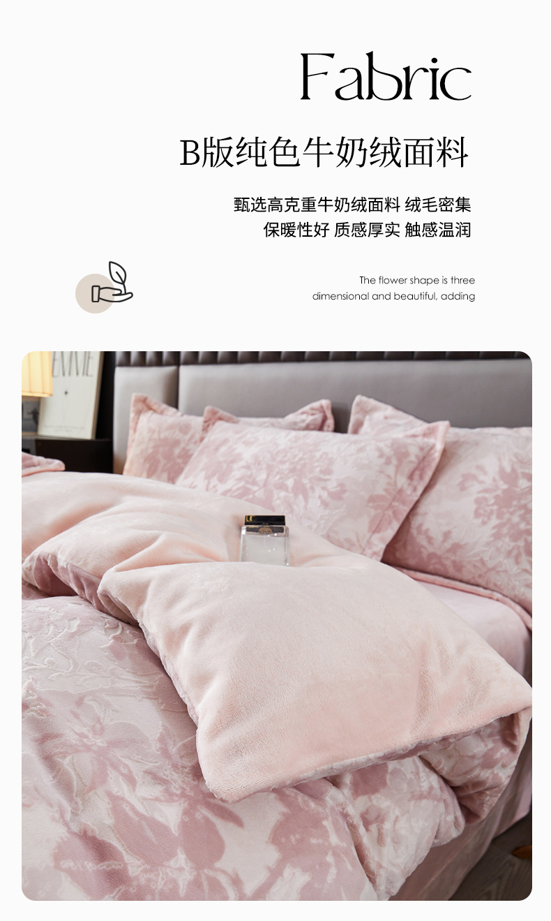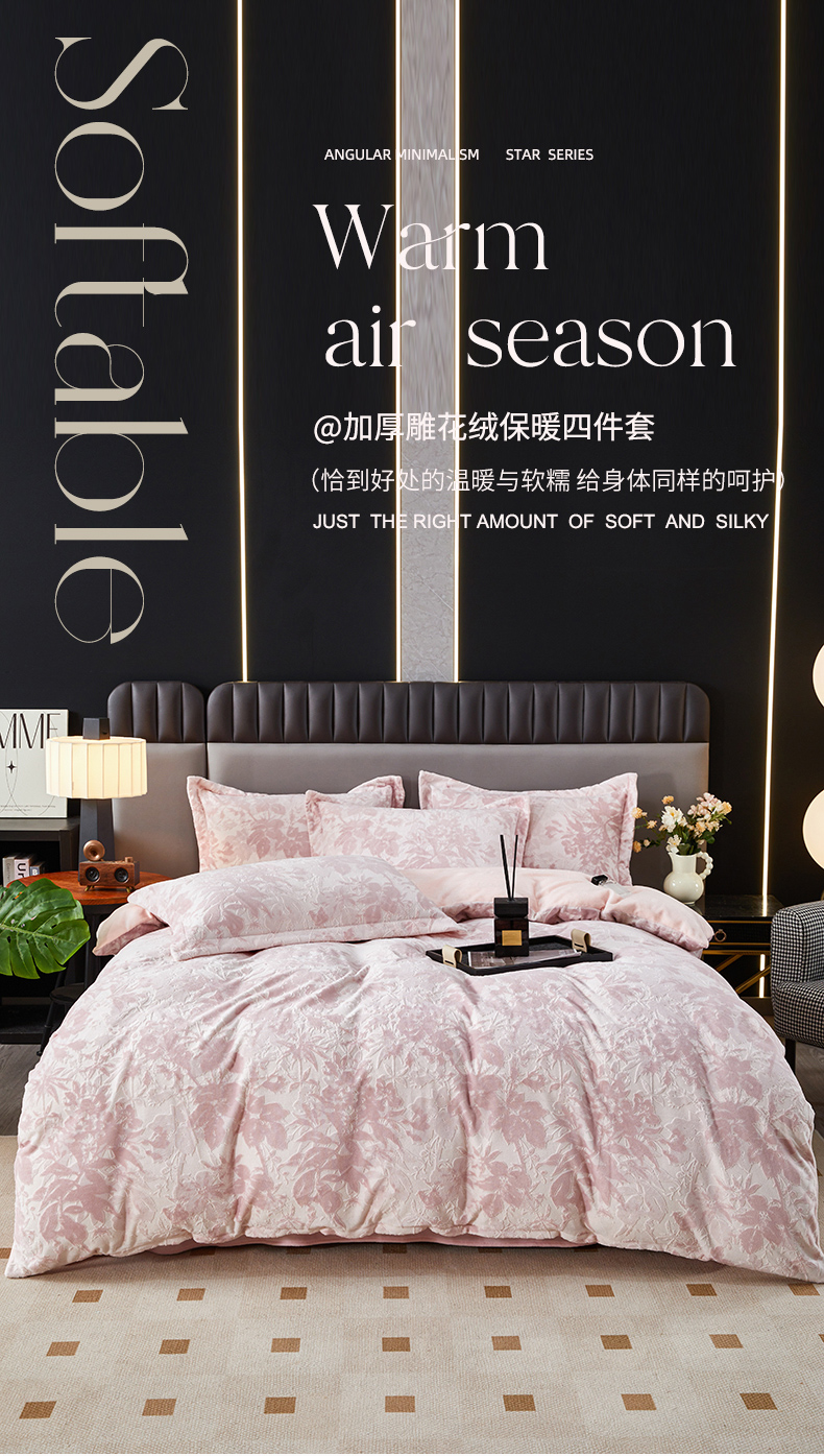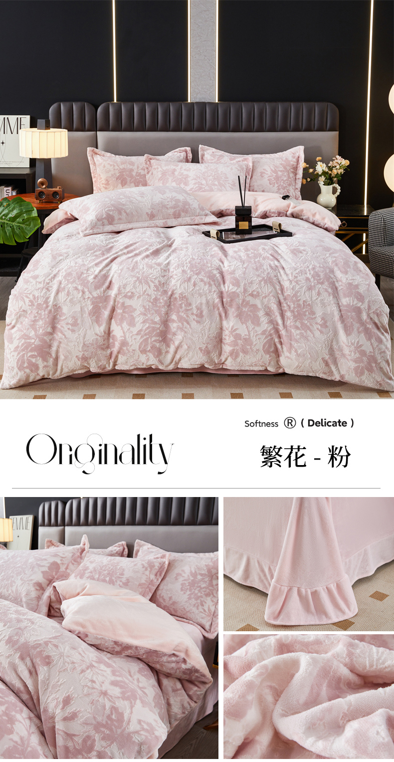 2024新款A类8斤雕花绒牛奶绒四件套 繁花粉