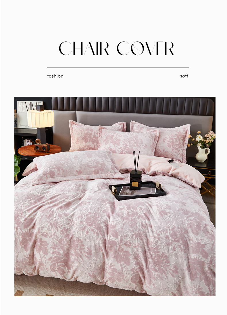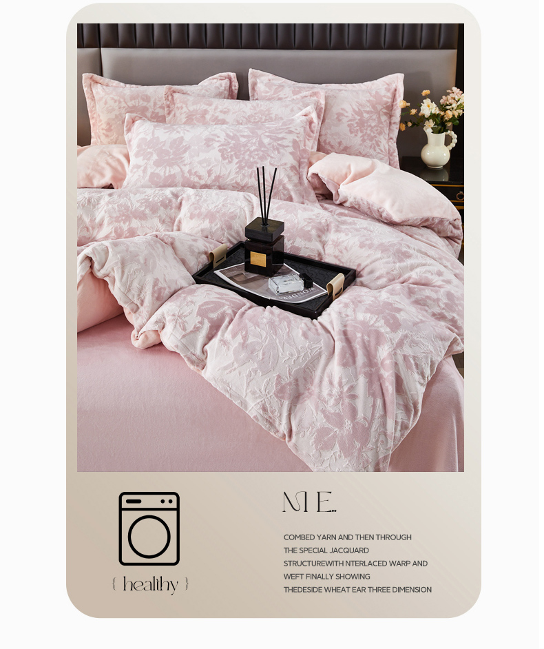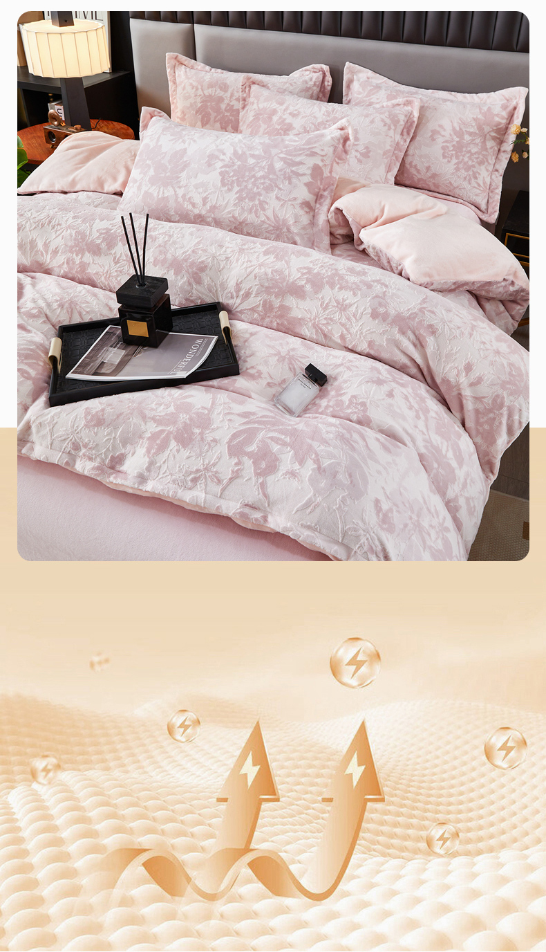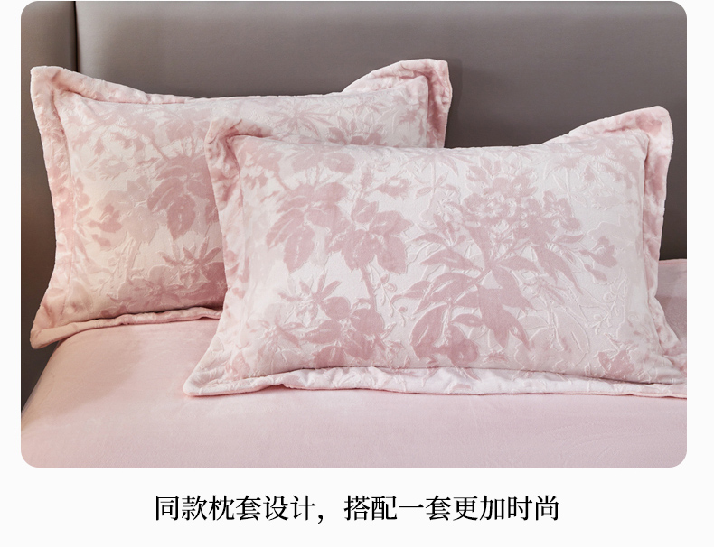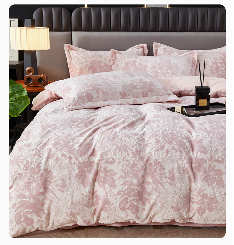 2024新款A类8斤雕花绒牛奶绒四件套 繁花粉