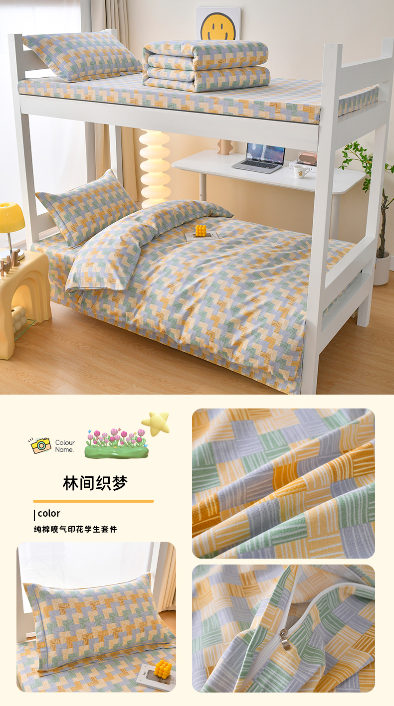 当前位置: 91家纺网 > 商品网购 > 床品套件 > 四件套 > 全棉普通四件套 > 优尚 2025全棉纯棉磨毛喷气印花学生三件套 林间织梦