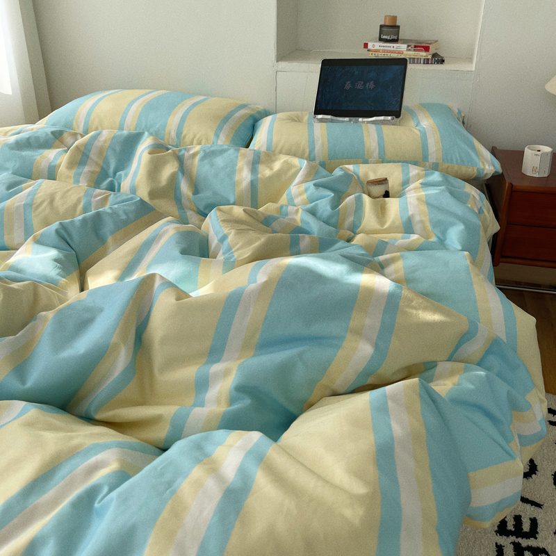 商品名称:桃喜 2024新款ins风全棉混搭四件套系列 薄荷曼波(同色)