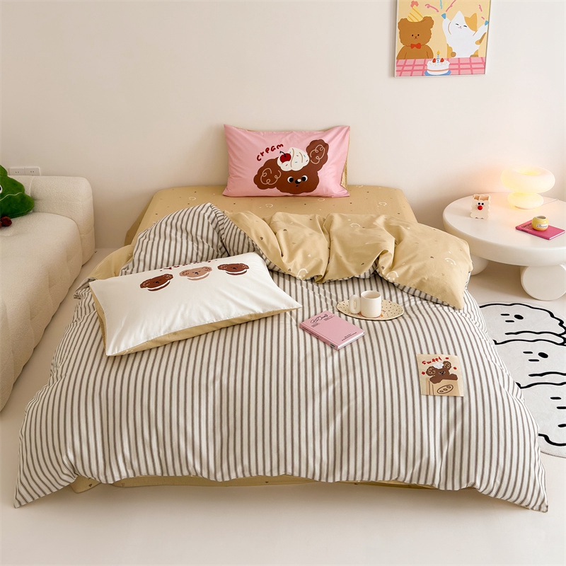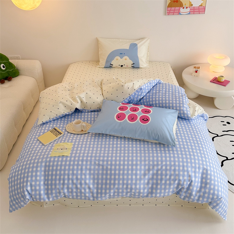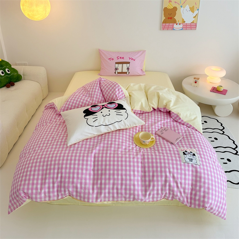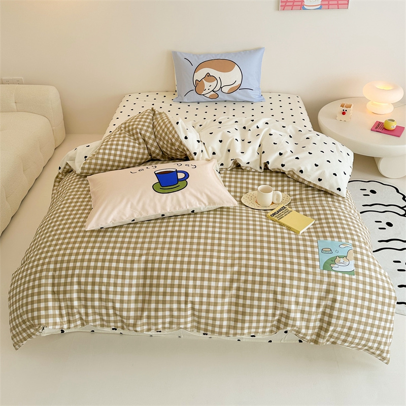 (总)2023新款40支纱全棉13070锁边工艺款四件套系列,格子爱心,嘉兰,咖条,朗尼,小兔兔,星星兔