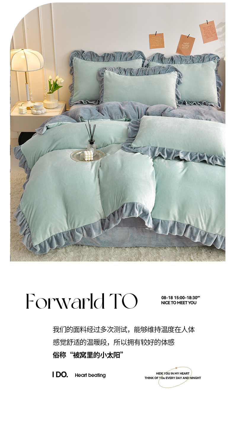 妮恒美 2024新款韩版牛奶绒四件套 元气绿+石英灰