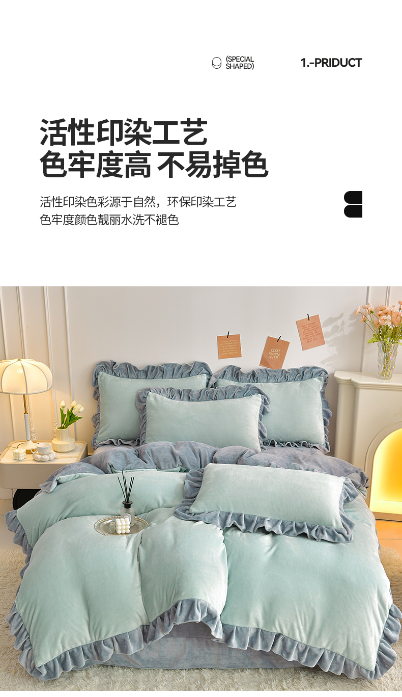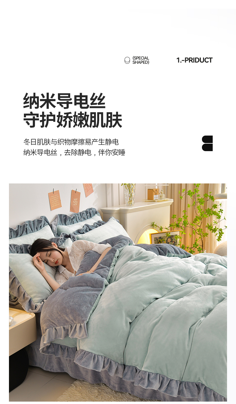 商品名称:妮恒美 2024新款韩版牛奶绒四件套 元气绿+石英灰