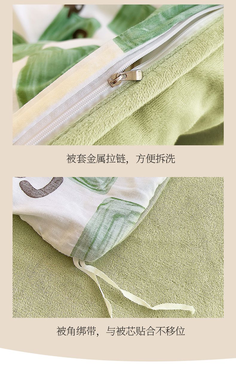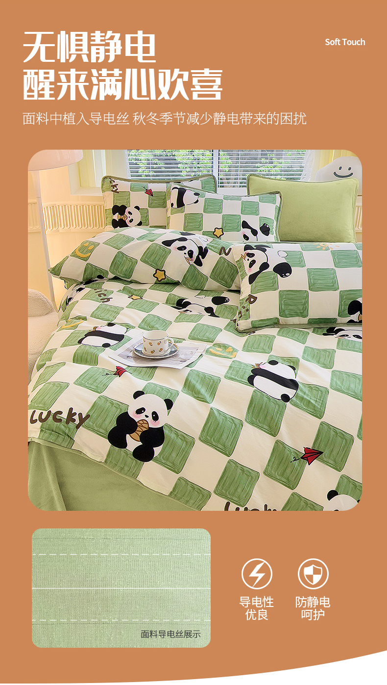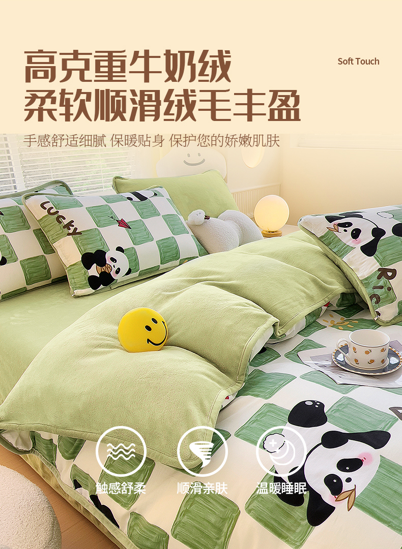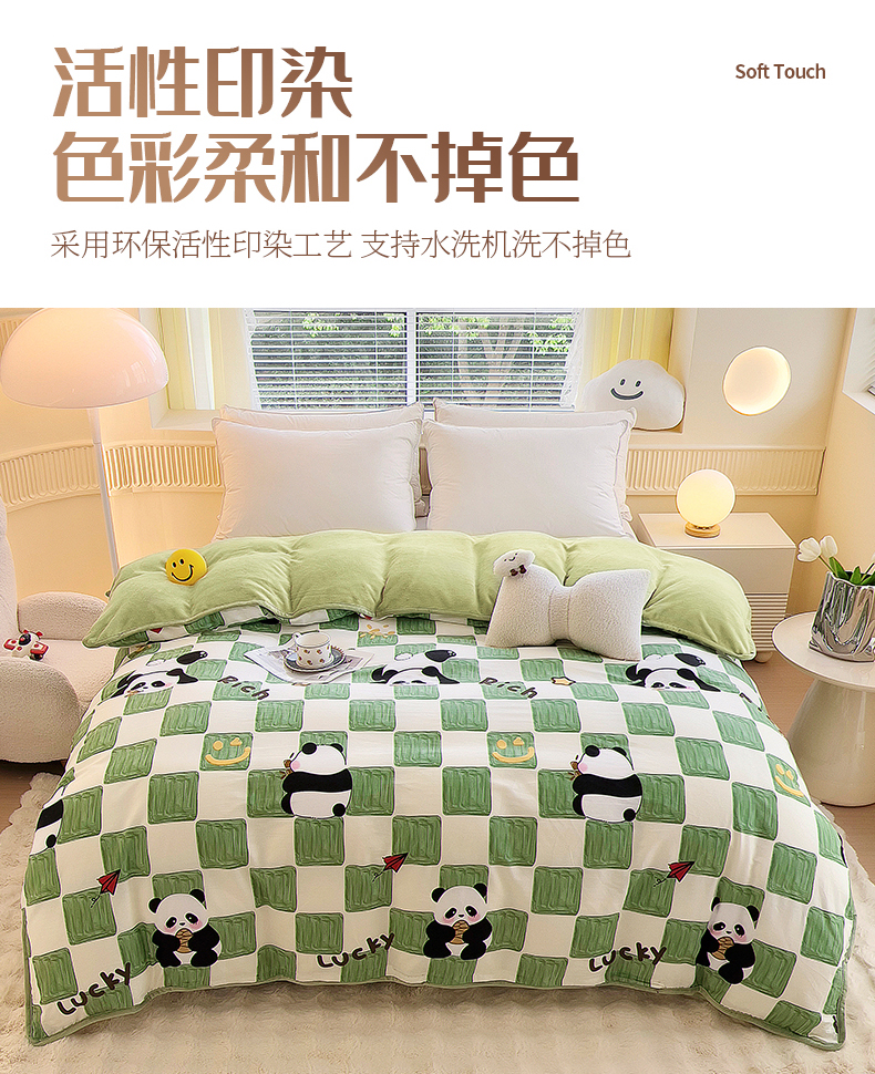 商品名称:2024新款全棉加牛奶绒四件套单被套系列-单被套 緑格熊猫