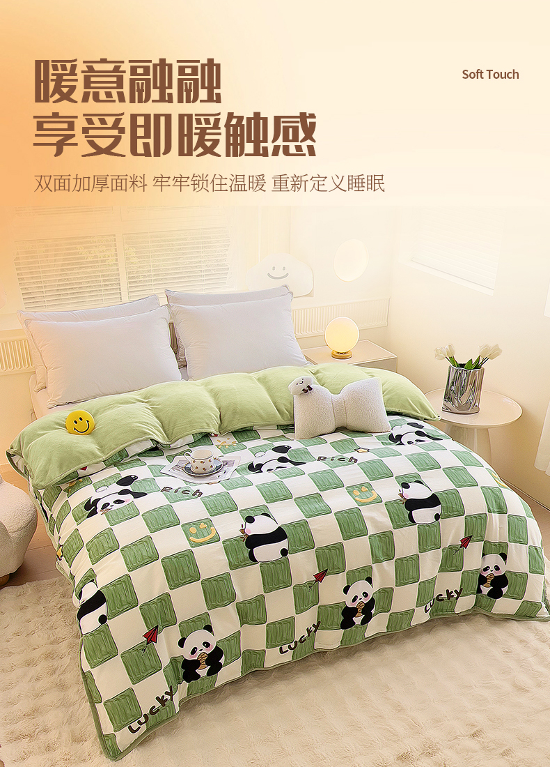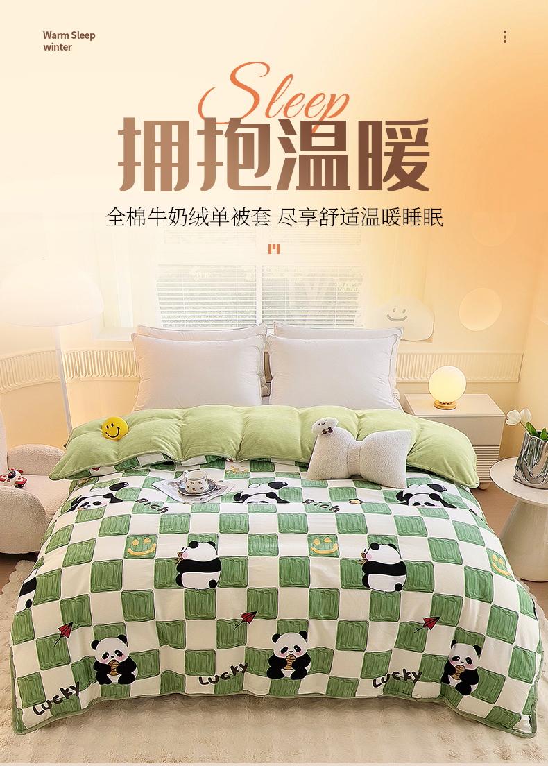 2024新款全棉加牛奶绒四件套单被套系列-单被套 緑格熊猫