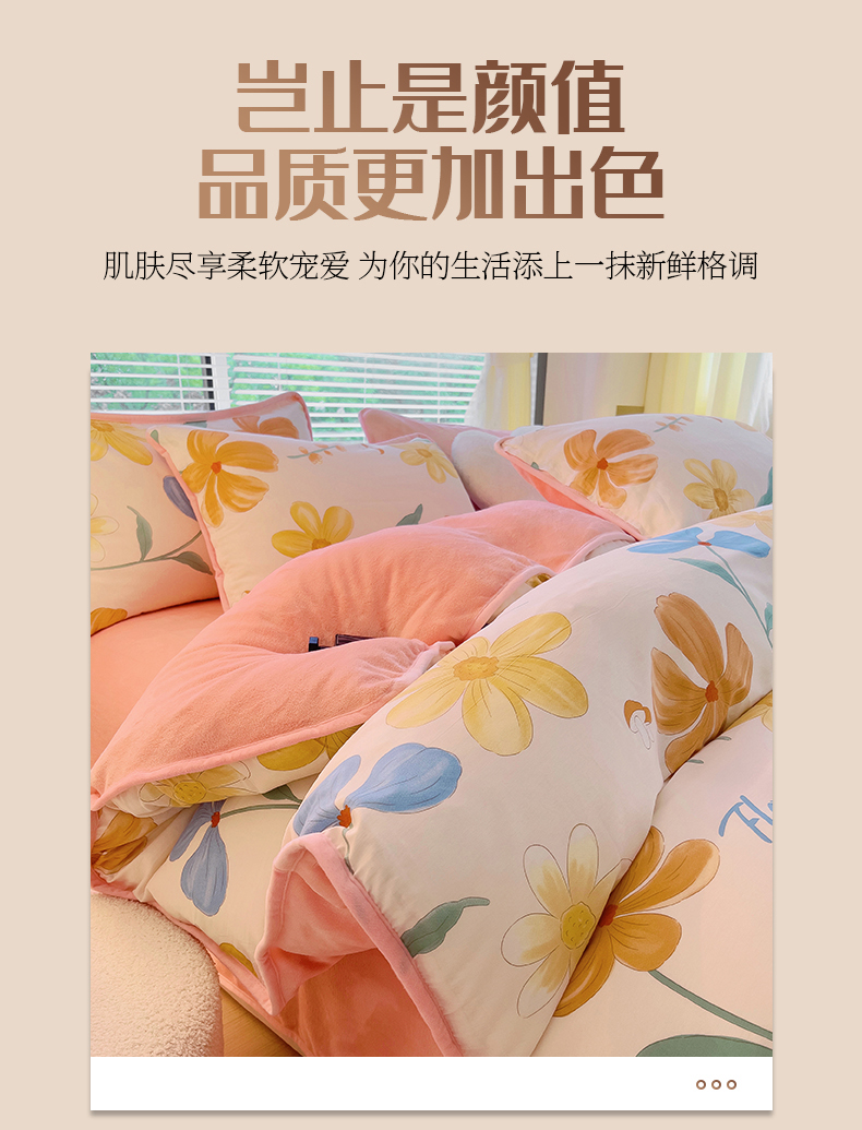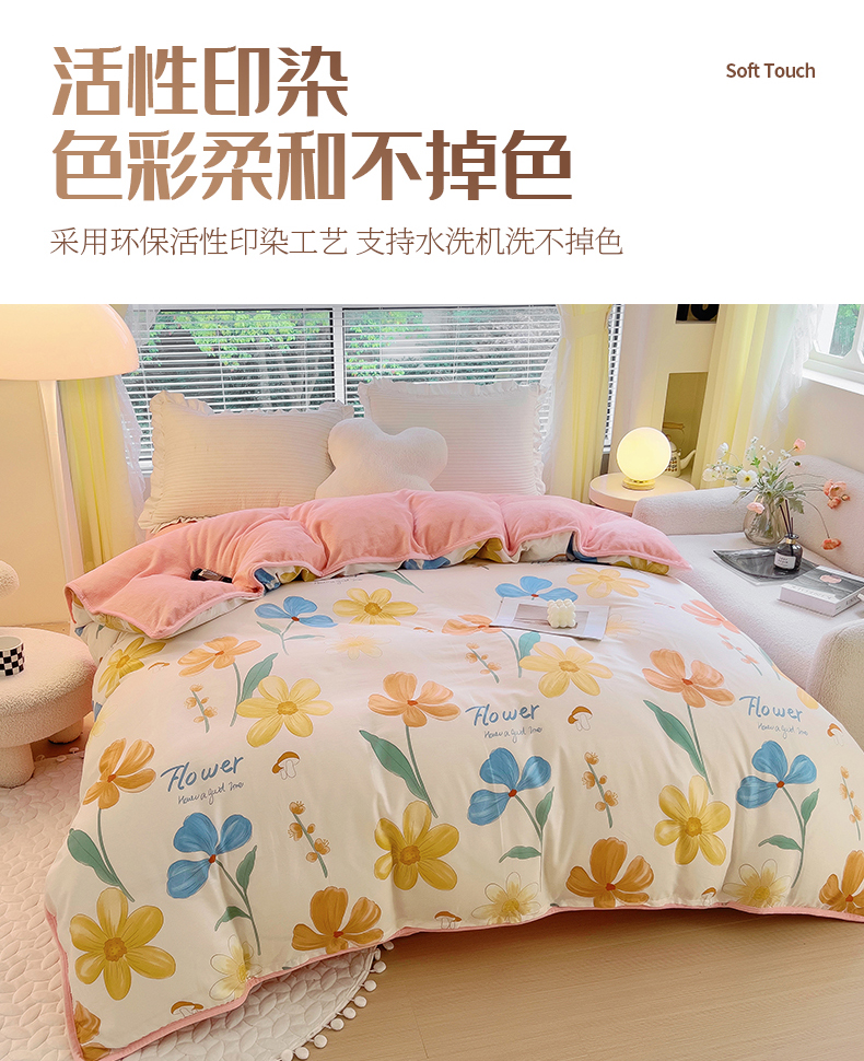琪琪阁 2023新款A棉B绒棉加绒牛奶绒四件套单被套 向阳花开,向阳花开