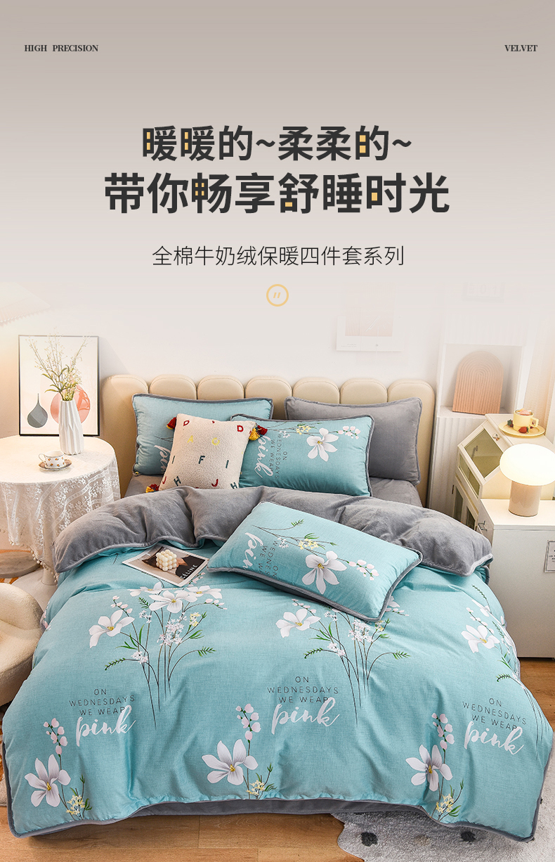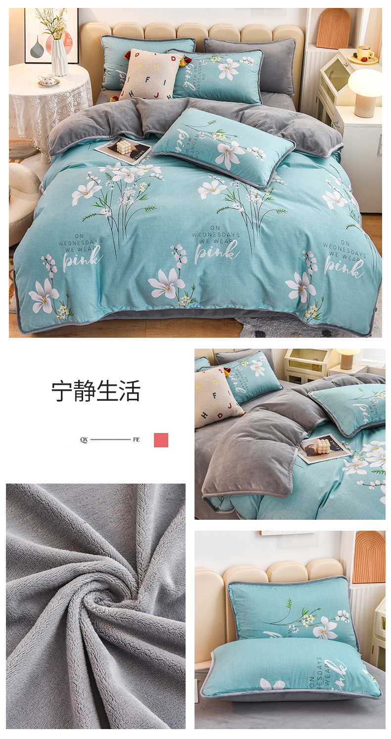 当前位置: 91家纺网 > 商品网购 > 床品套件 > 四件套 > 牛奶绒四件套 > 2024新款全棉加牛奶绒四件套单被套系列-四件套 宁静生活
