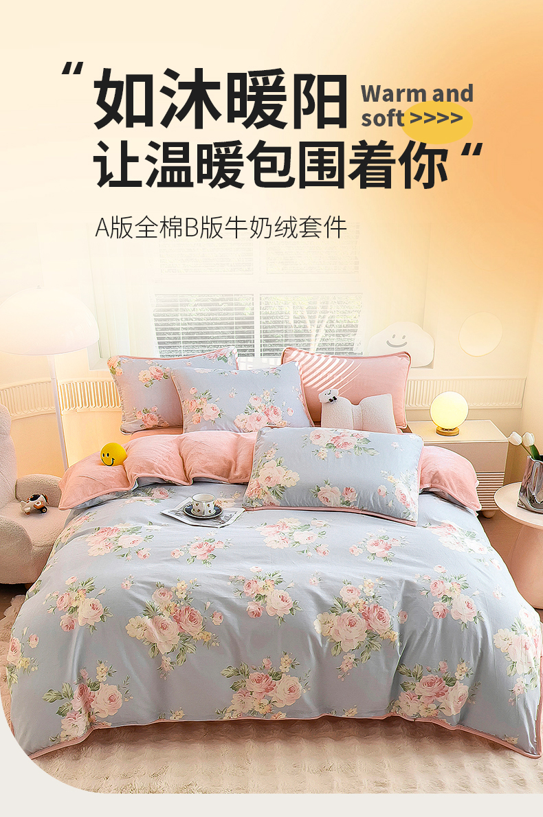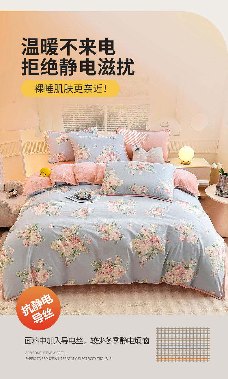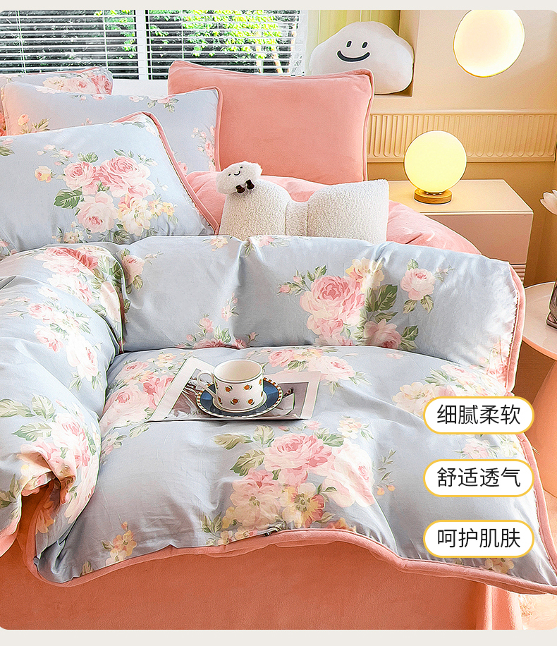 当前位置: 91家纺网 > 商品网购 > 床品套件 > 四件套 > 牛奶绒四件套 > 2024新款全棉加牛奶绒四件套单被套系列-四件套 温婉佳人