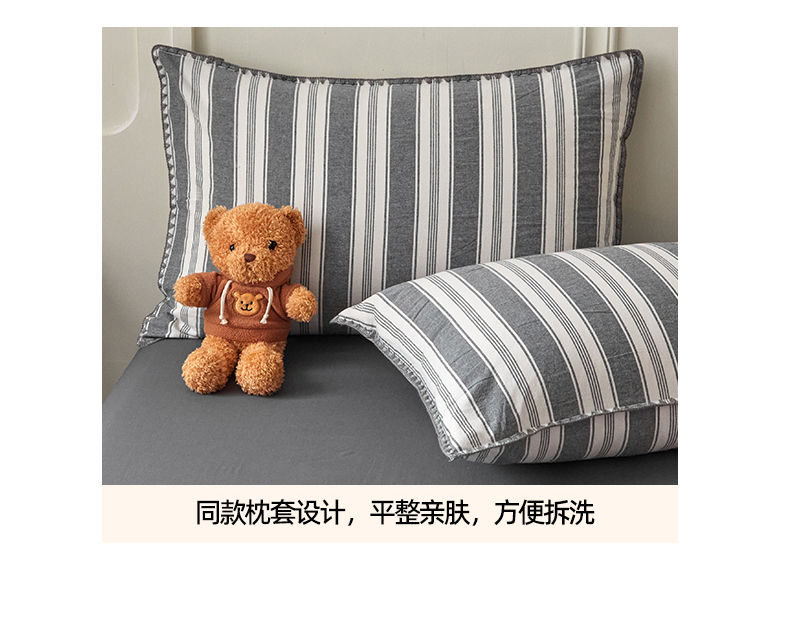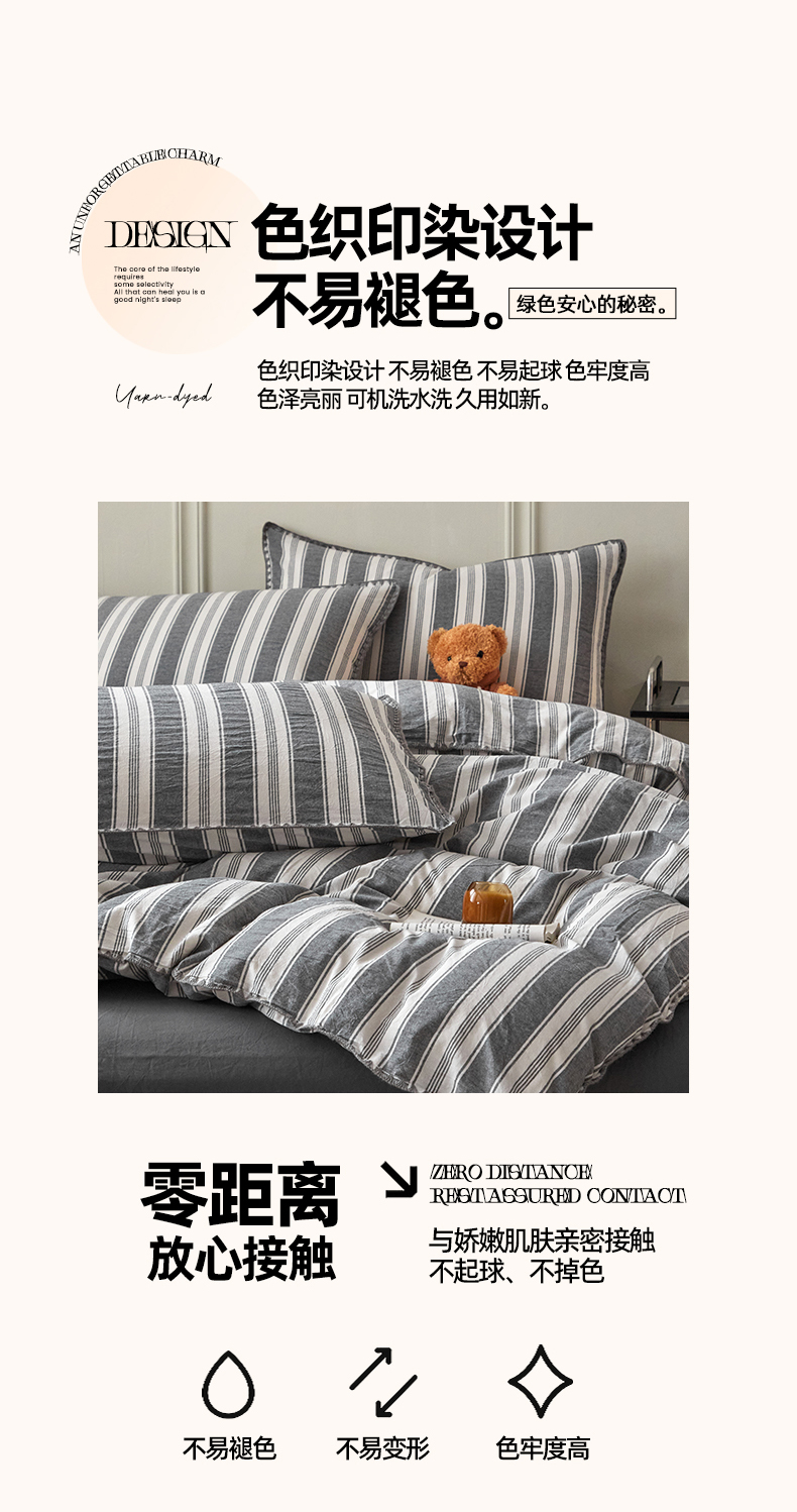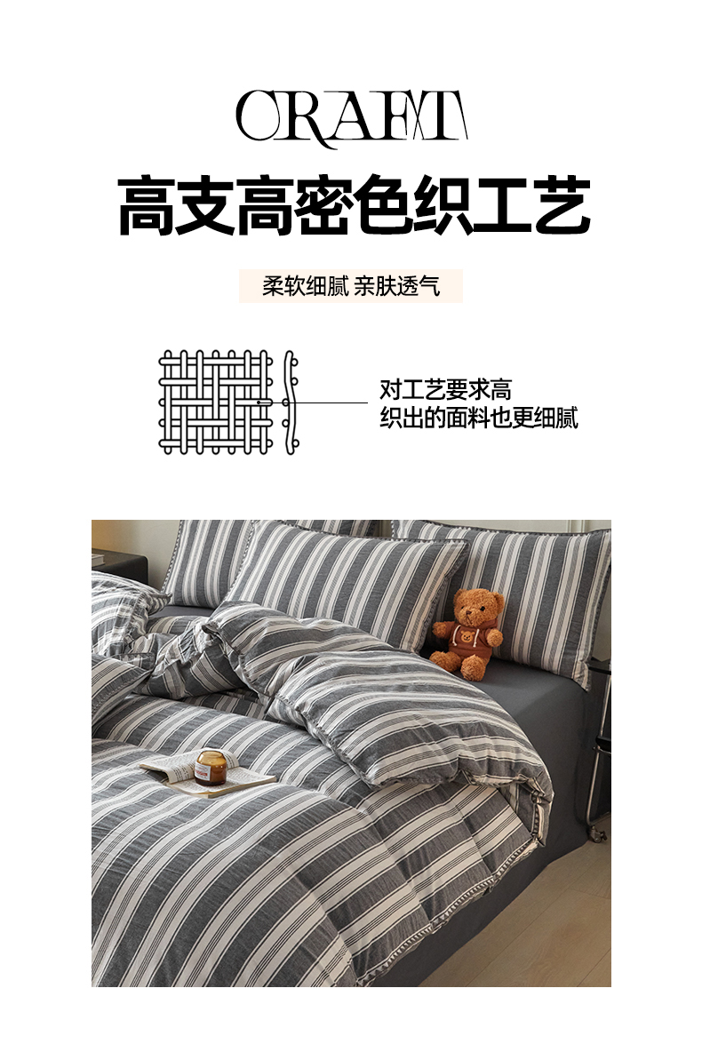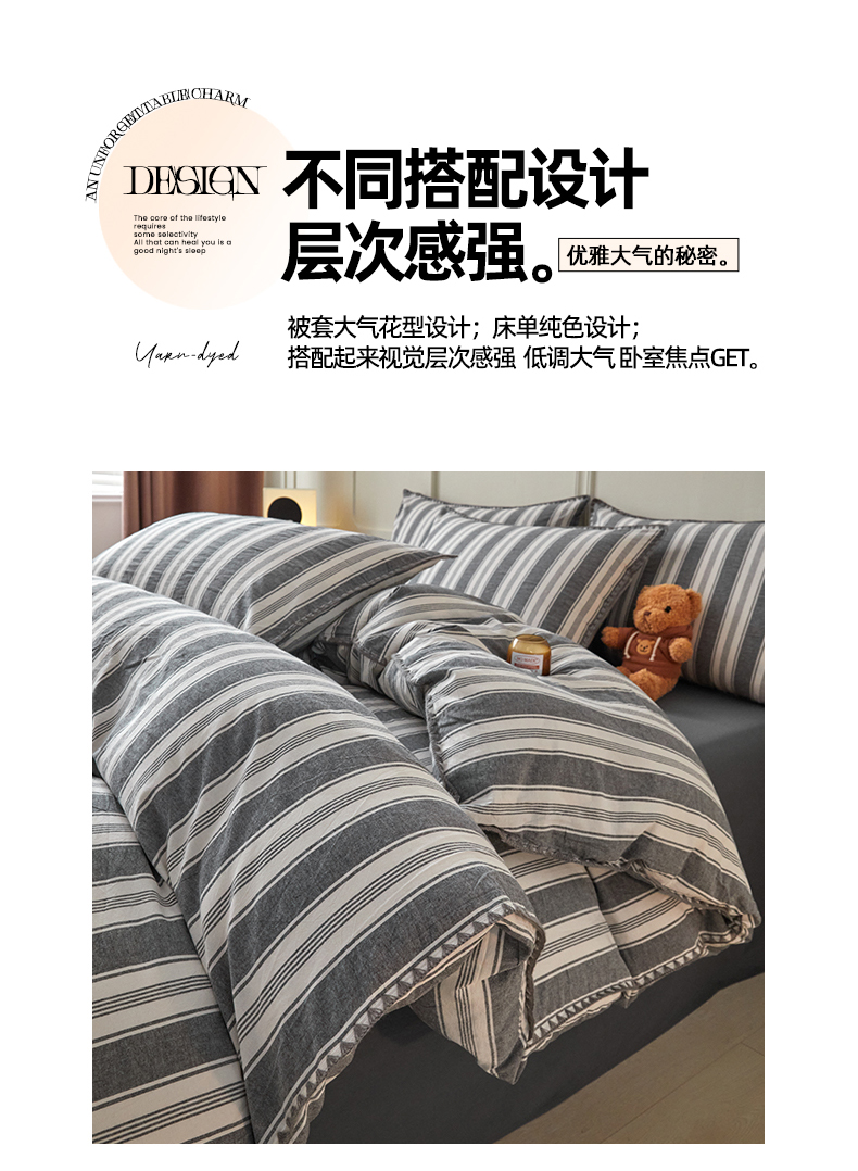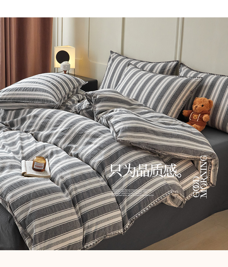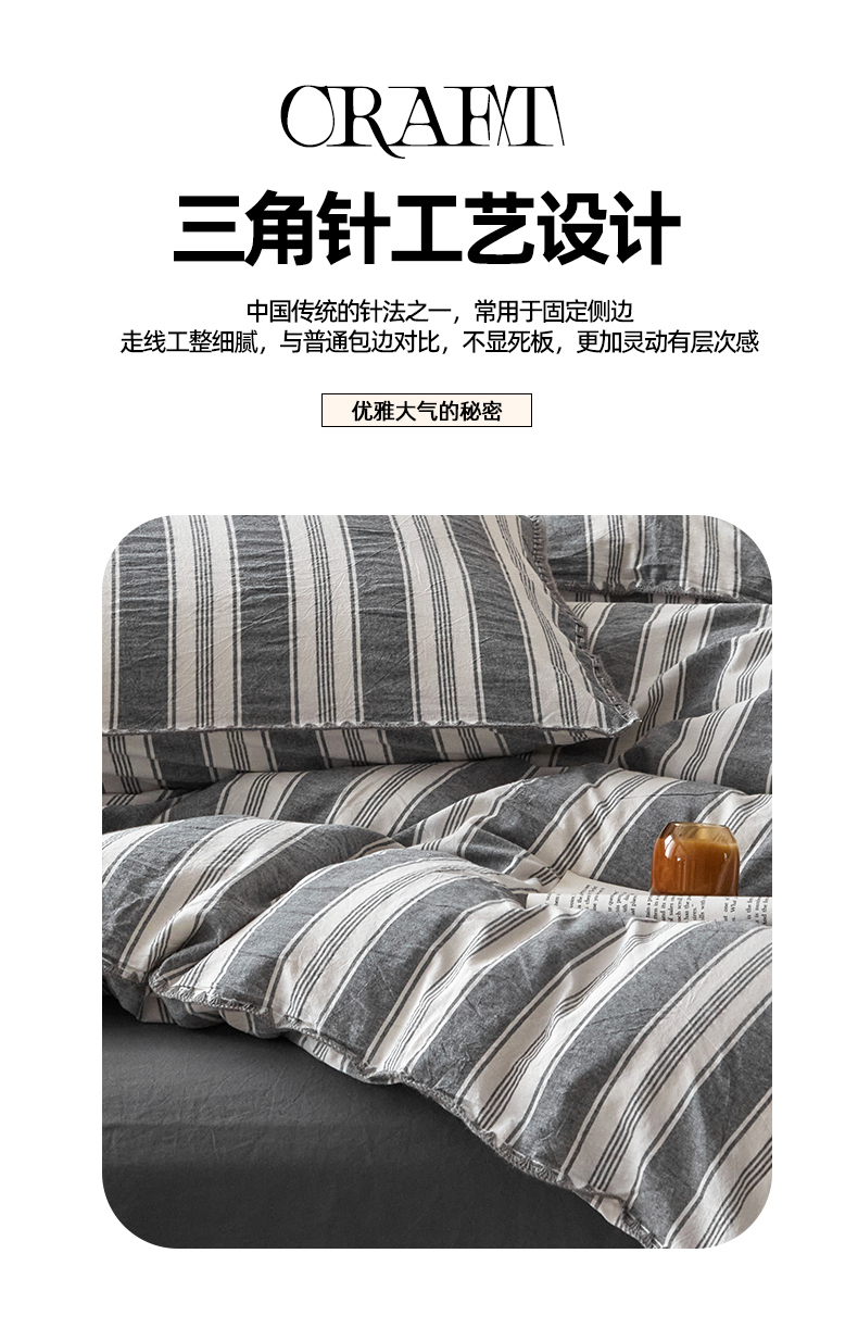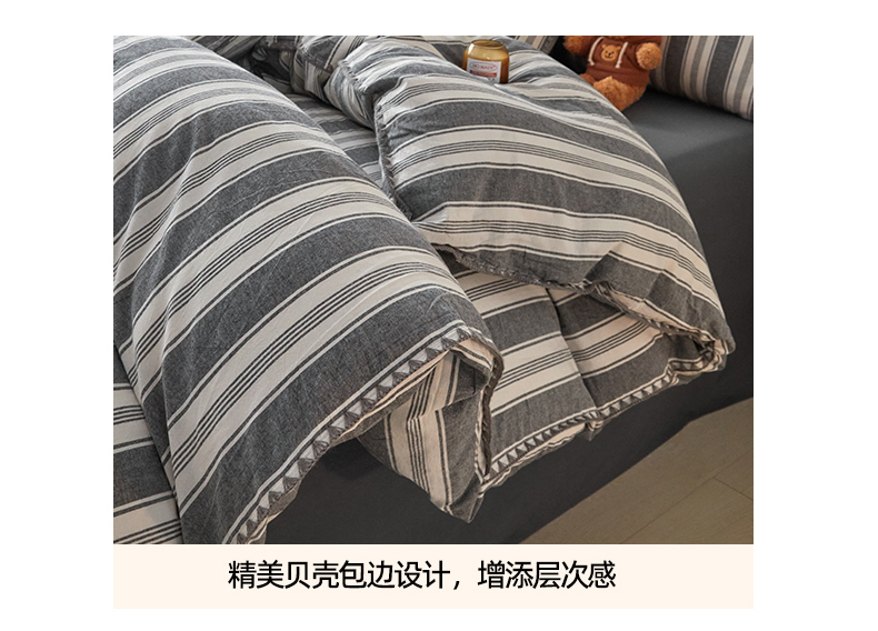 商品名称:吉象家纺 2024新款A类全棉色织水洗棉贝壳边三角针四件套 青春浅灰