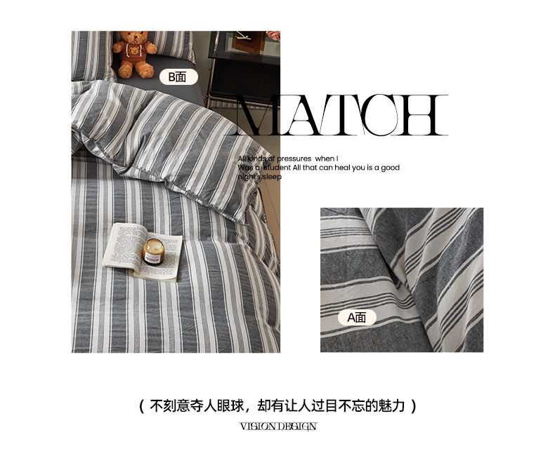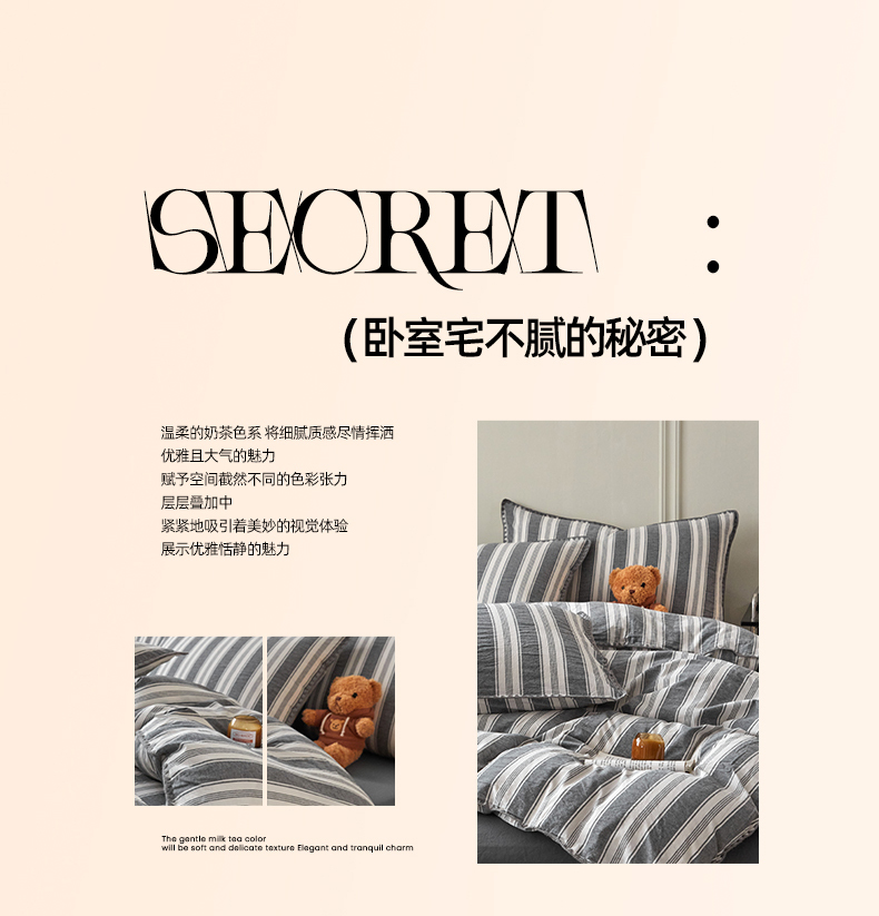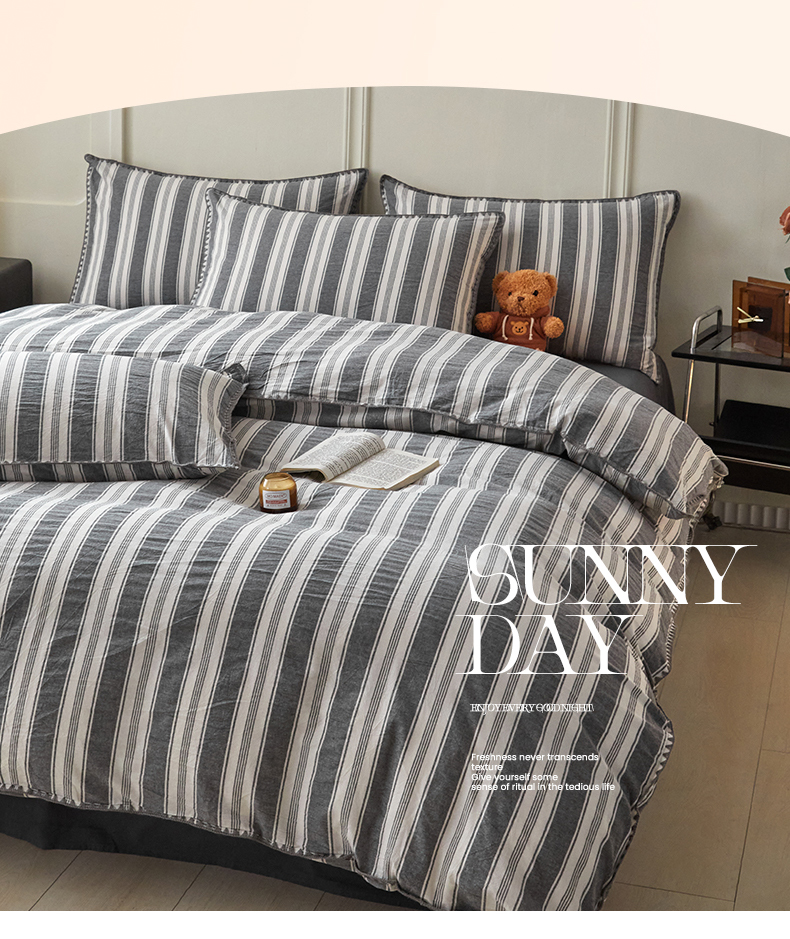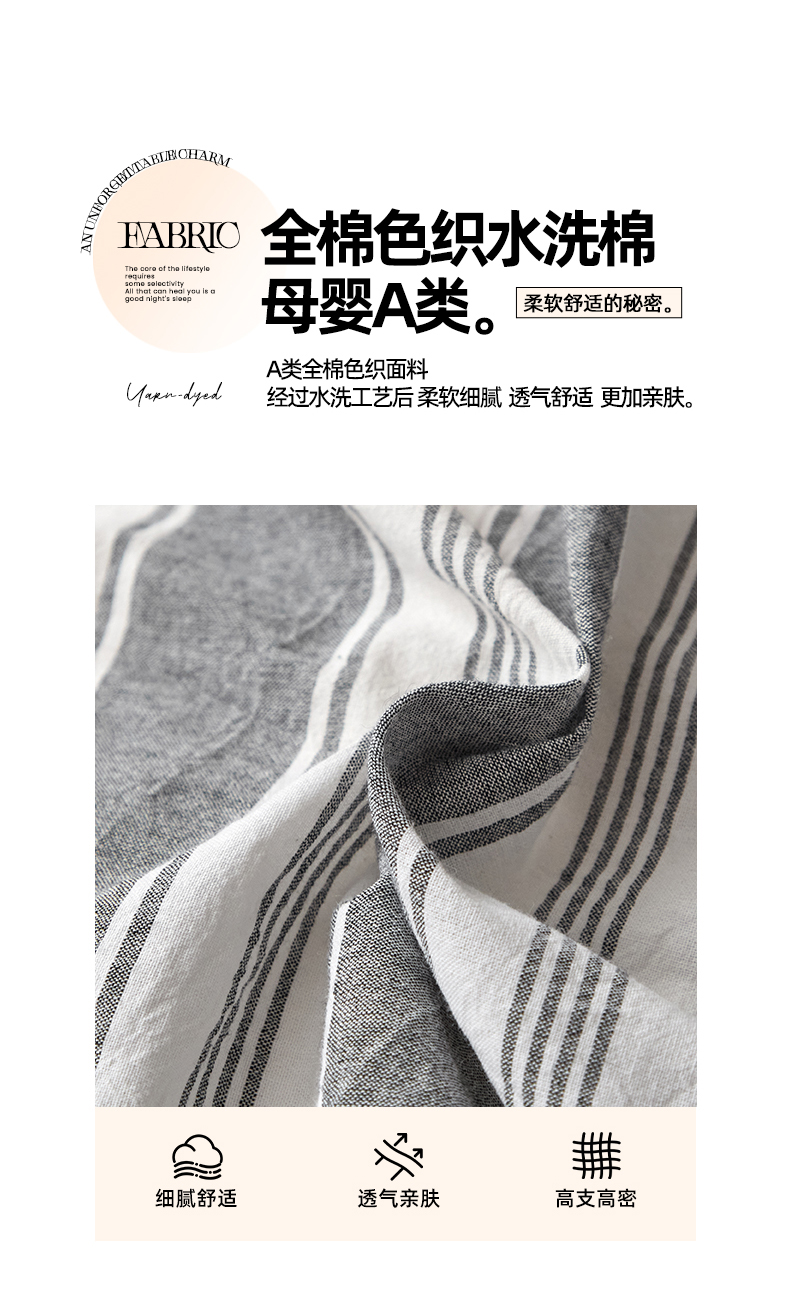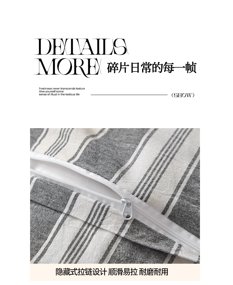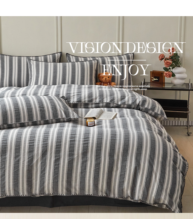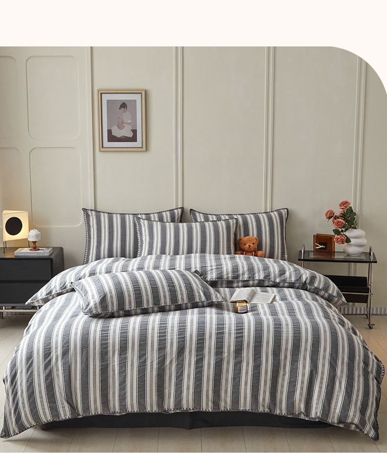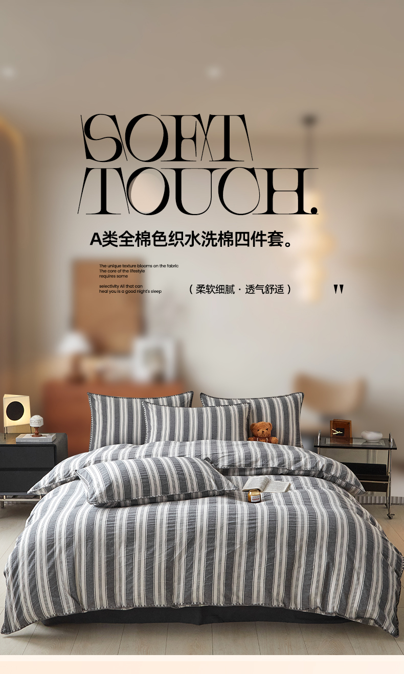 商品名称:吉象家纺 2024新款A类全棉色织水洗棉贝壳边三角针四件套 青春浅灰