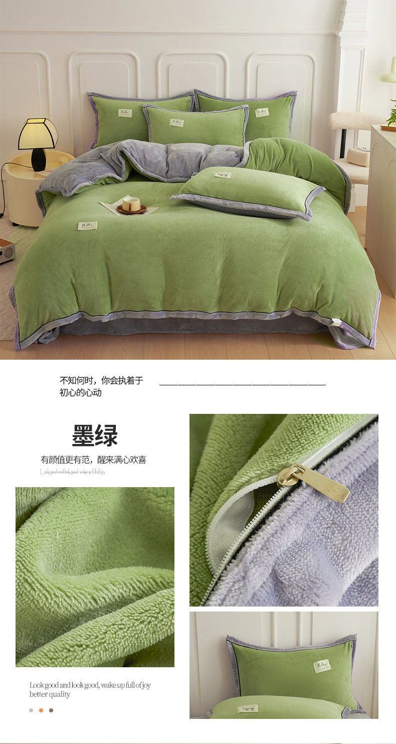 当前位置: 91家纺网 > 商品网购 > 床品套件 > 四件套 > 牛奶绒四件套 > 贝诗梦 2025新款高克重纯色牛奶绒宽边工艺款四件套 双拼牛奶绒-牛油果绿+浅灰