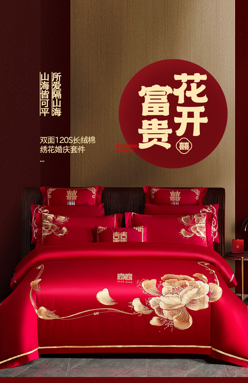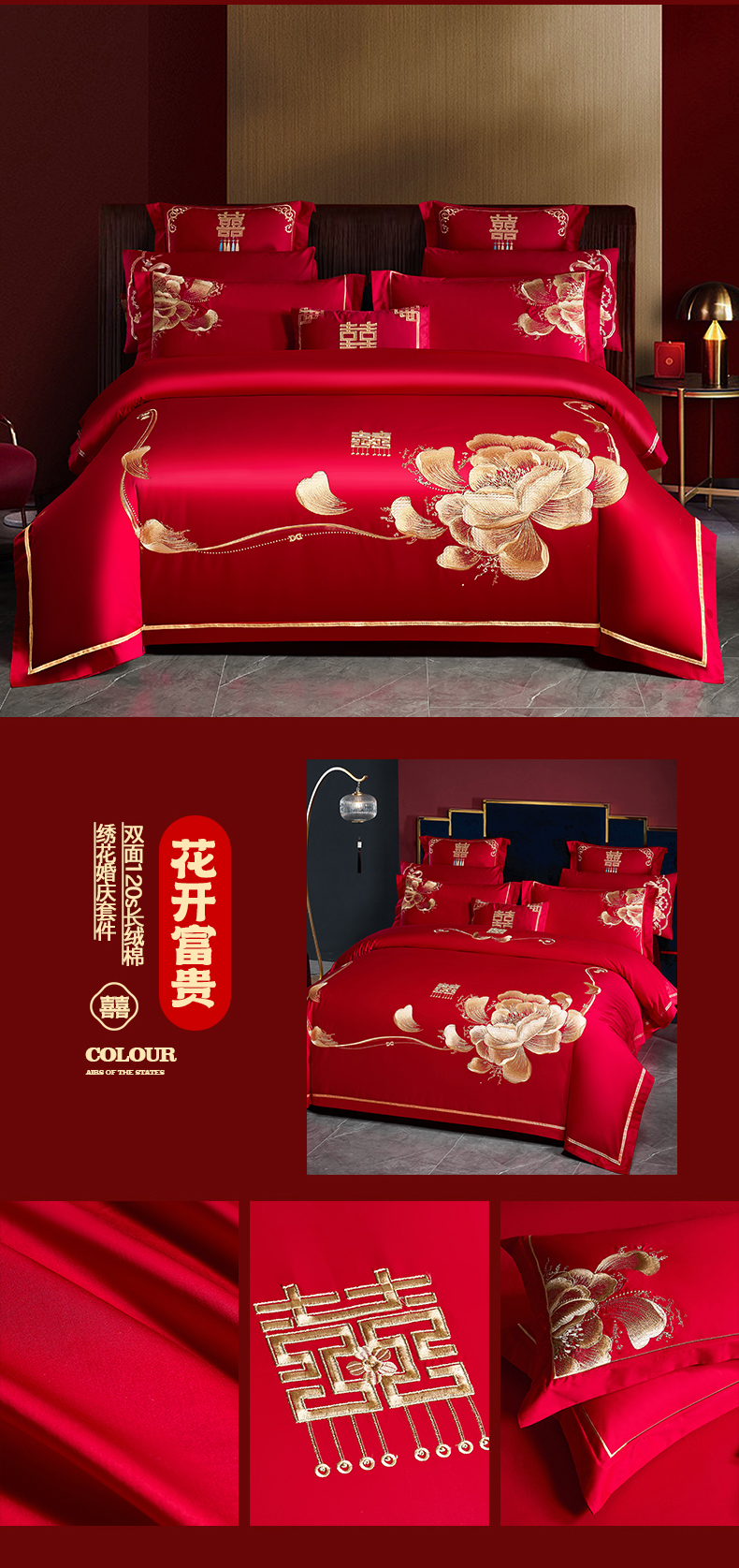 当前位置: 91家纺网 > 商品网购 > 床品套件 > 四件套 > 婚庆四件套 > 千禧家纺 2024新款双面长绒棉绣花婚庆多件套 花开富贵