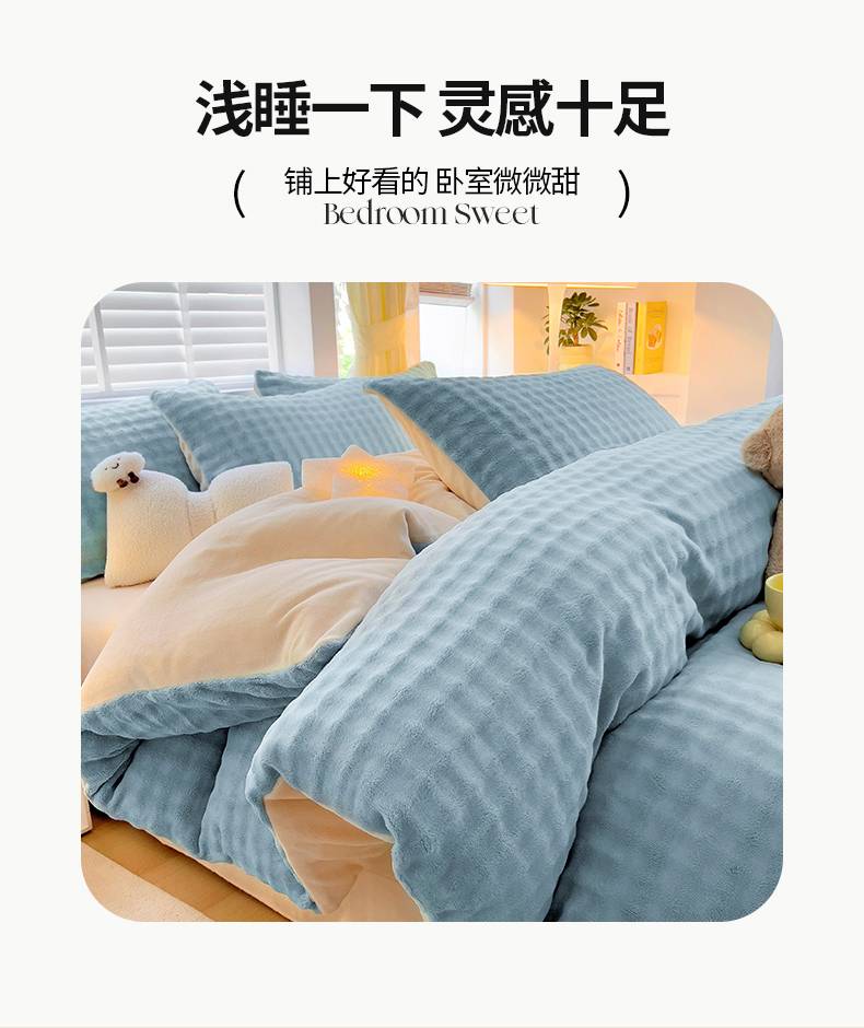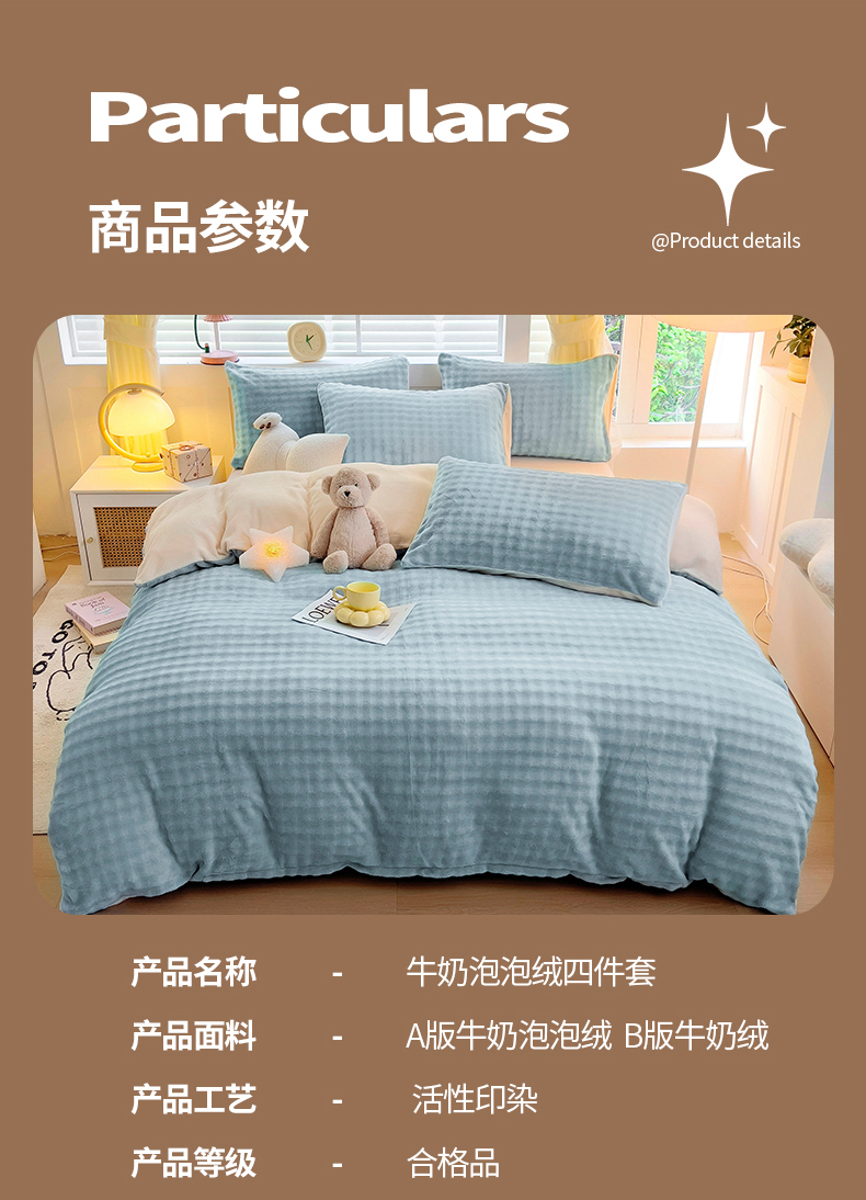 商品名称:琪琪阁家纺 2024新款牛奶绒泡泡绒四件套 雾霾蓝
