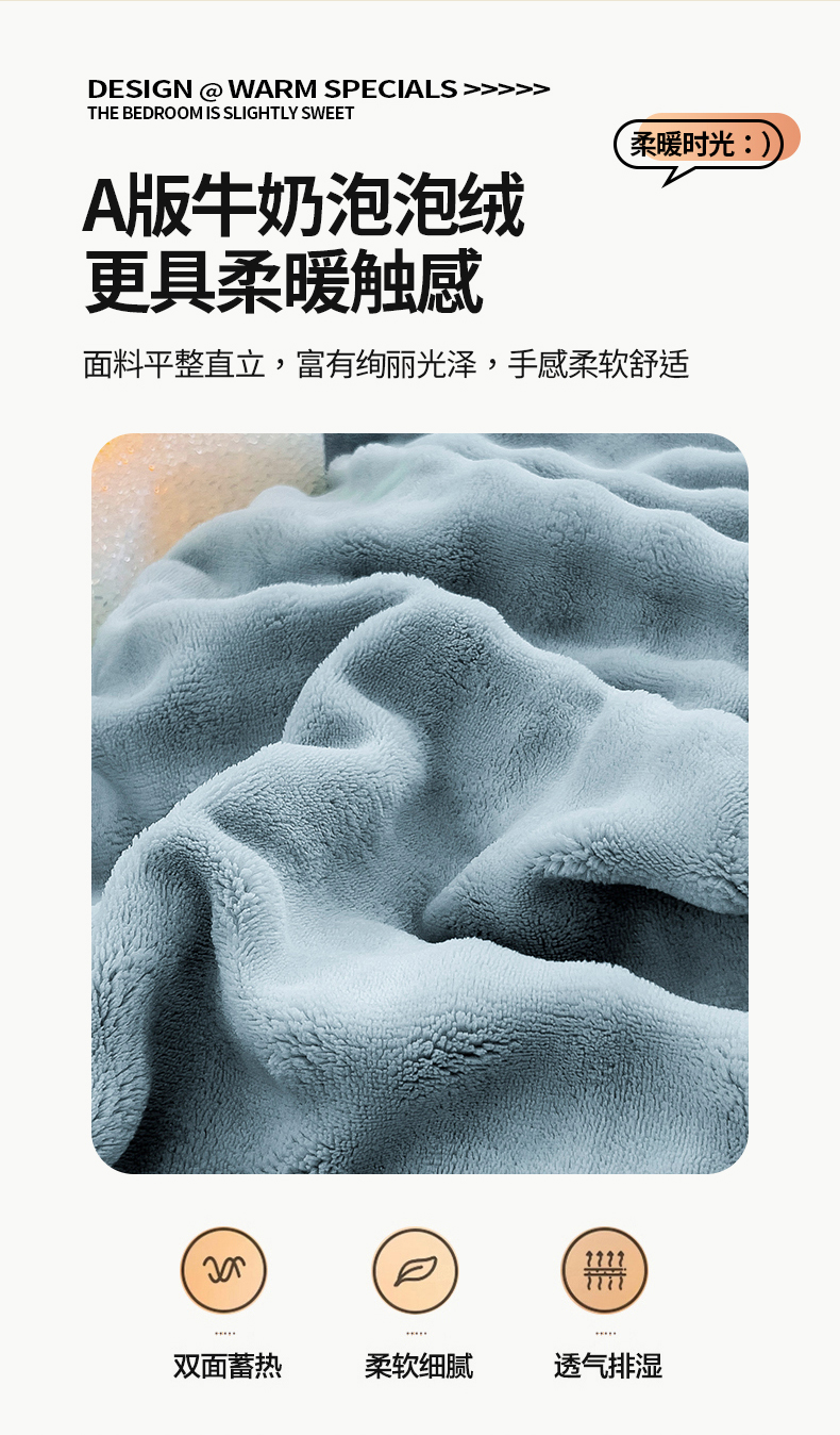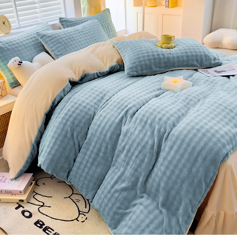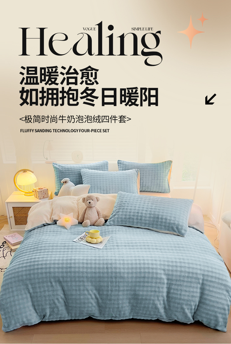 琪琪阁家纺 2024新款牛奶绒泡泡绒四件套 雾霾蓝