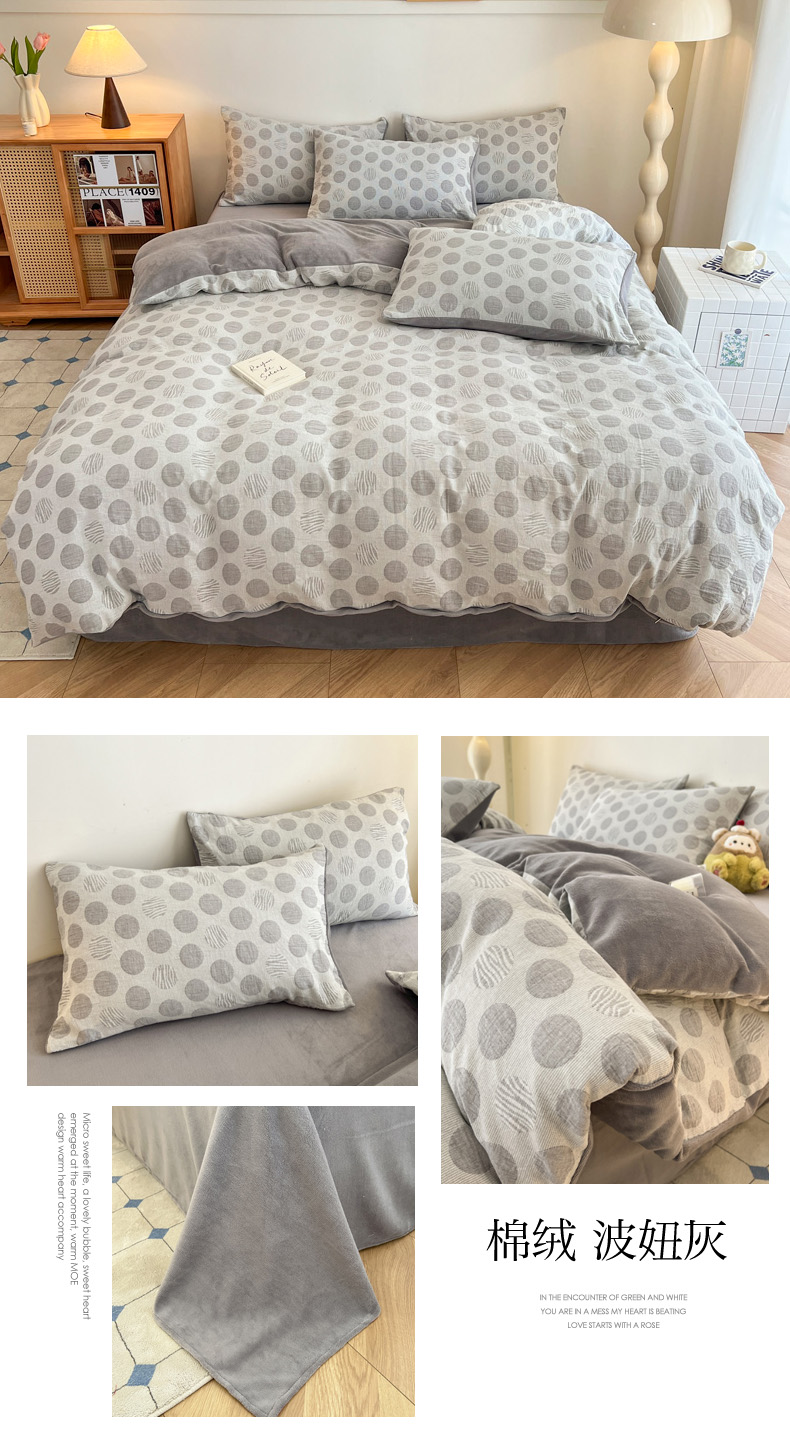 商品名称:柠馨 2024新款轻奢全棉三层纱牛奶绒棉绒加厚保暖四件套 棉绒-波妞灰