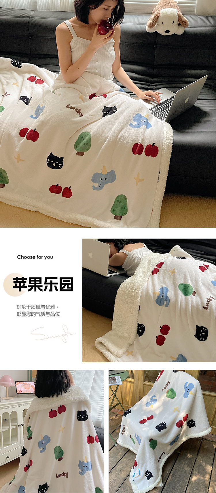 萝莉家纺 2024秋冬新款多功能加厚牛奶绒羊羔绒多功能毛毯 苹果乐园